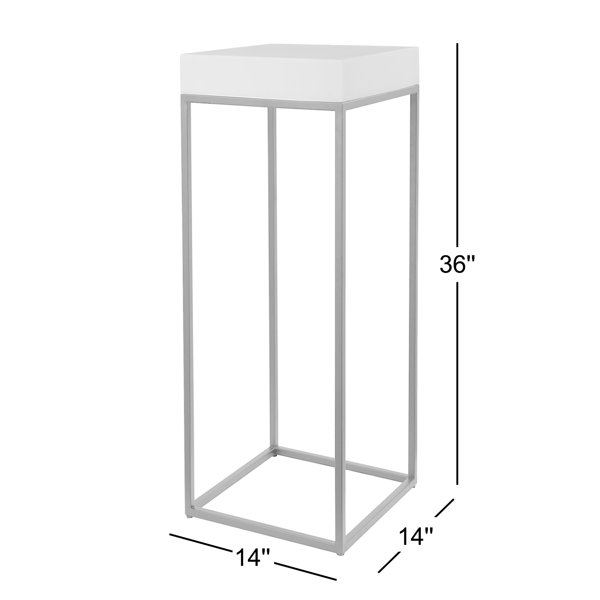 This modern plant stand combines a white marble look, atop a simple steel base finished in aged black.