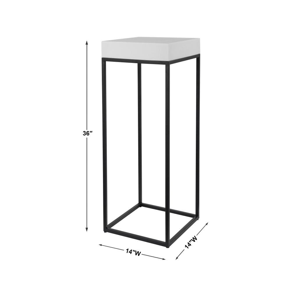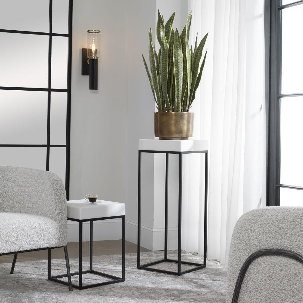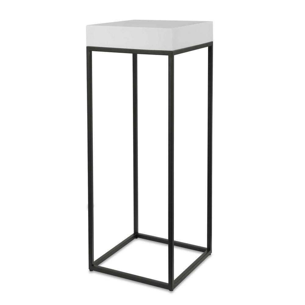 This Modern Plant Stand Combines A White Marble Look, Atop A Simple Steel Base Finished In Aged Black.