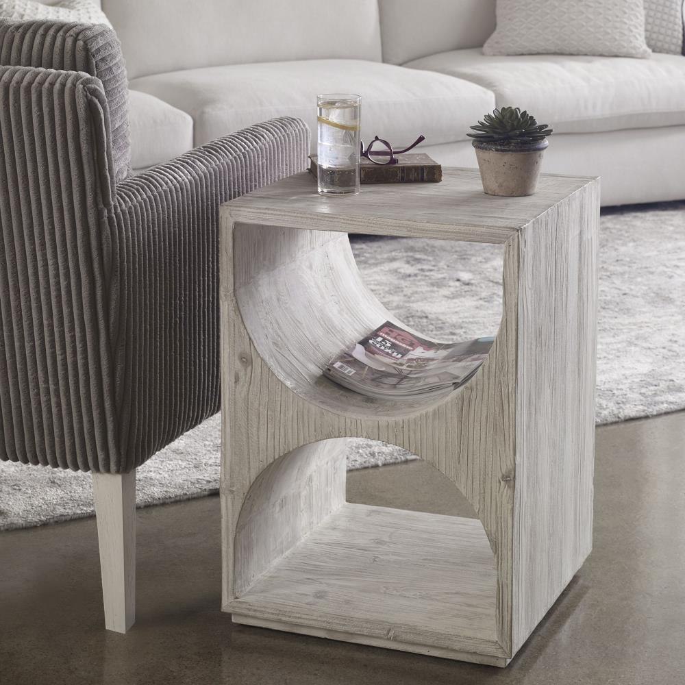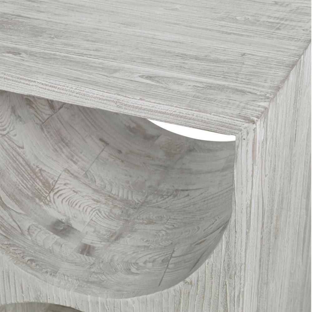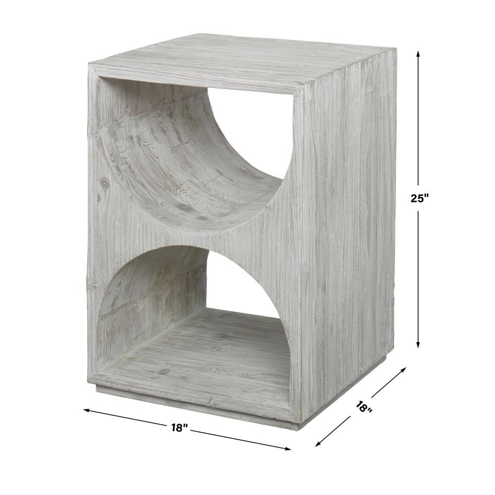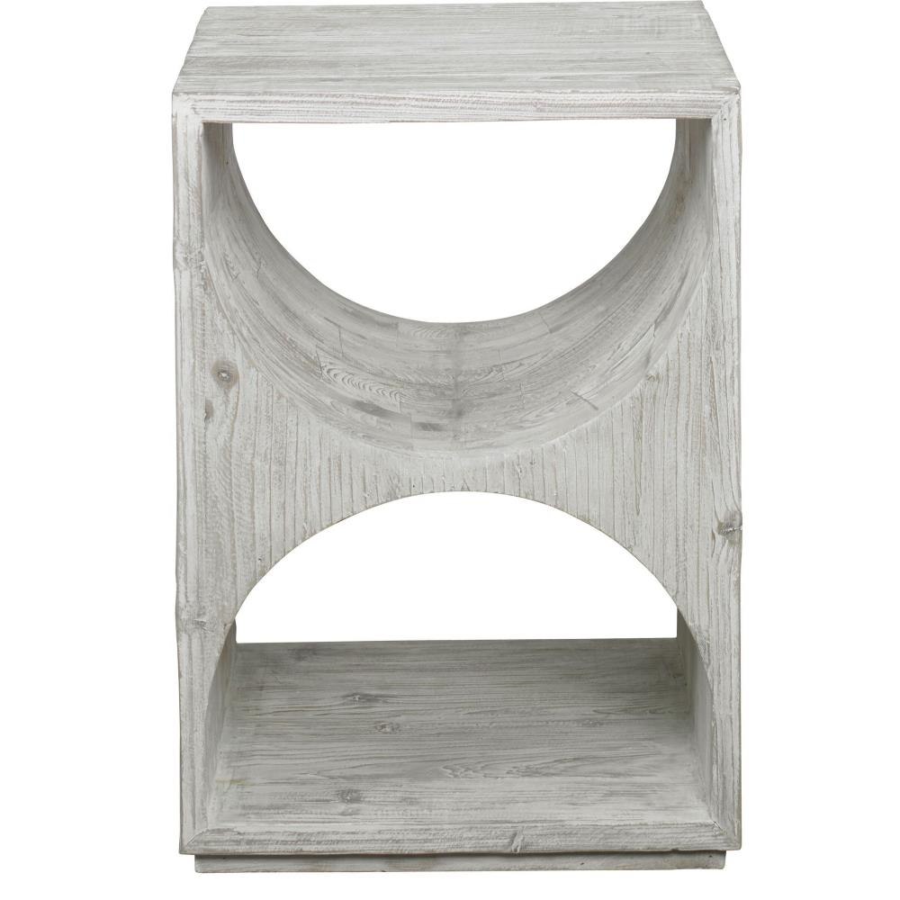 Influenced By Scandinavian Style, This Side Table Is Constructed From Solid Fir Wood With Simple Carved Cut Outs And Is Finished In A Distressed Ivory With Rub-through Details. Solid Wood Will Continue To Move With Temperature And Humidity Changes, Which Can Result In Cracks And Uneven Surfaces, Adding To Its Authenticity And Character.
