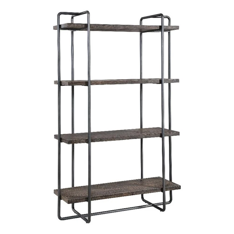 Uttermost Stilo Farmhouse Boat Wood Plywood and Steel Etagere in Brown/Gray