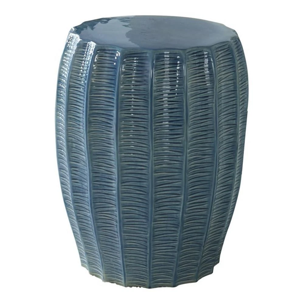 Uttermost Harbor 17.38" Coastal Ceramic Geometric Garden Stool in Aqua Blue