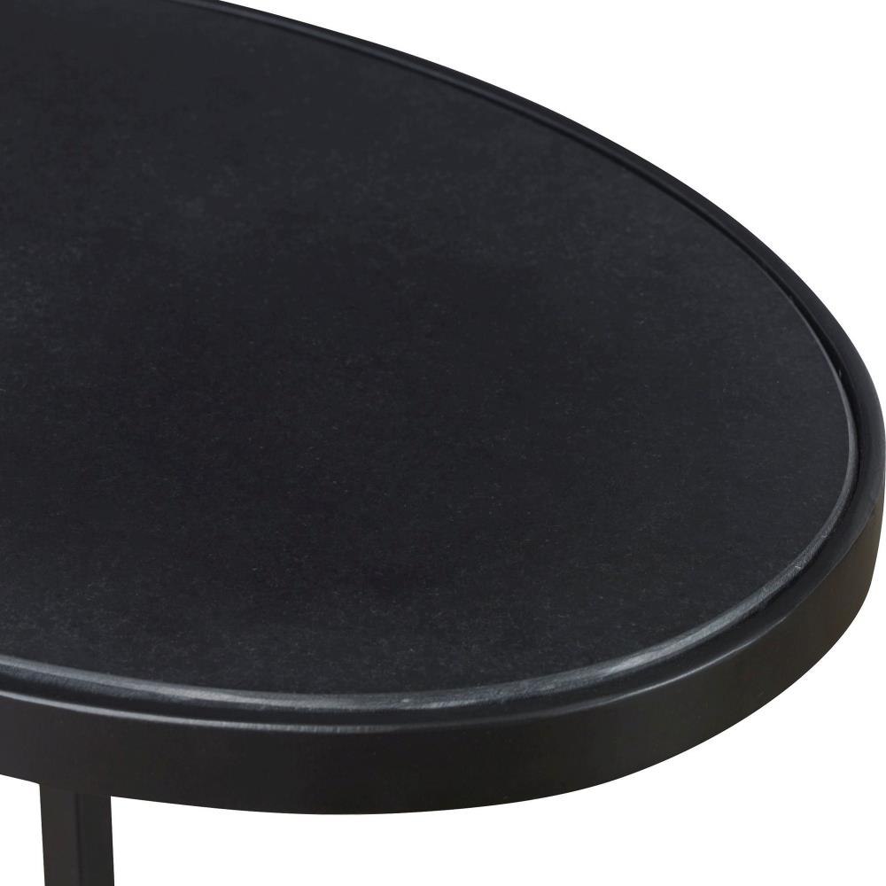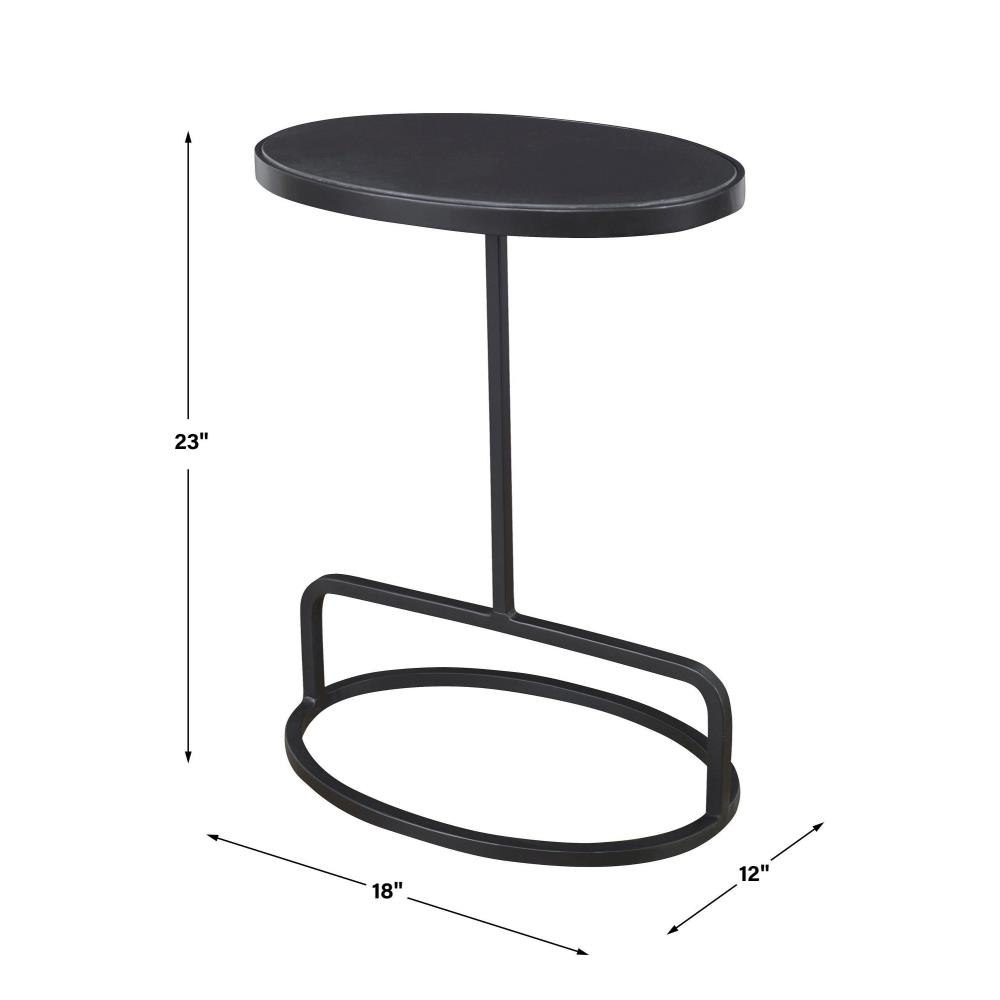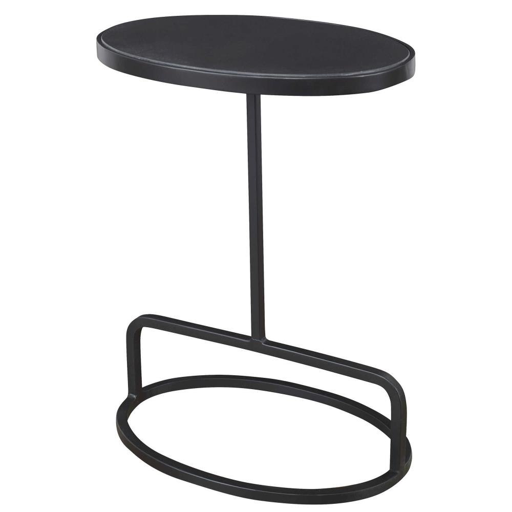 Showcasing A Clean-lined Design, This Accent Table Features An Inset Oval-shaped Honed Black Marble Top, Supported With A Hand Forged Iron Base Finished In Satin Black. True To The Nature Of Natural Materials, Each Piece Will Have Unique Marbling And Veining Throughout.