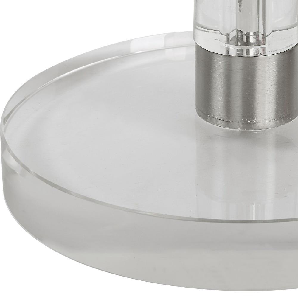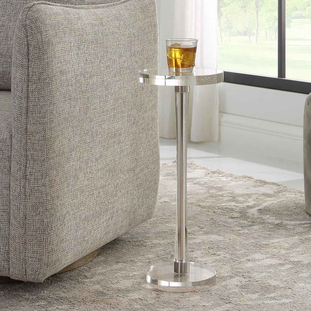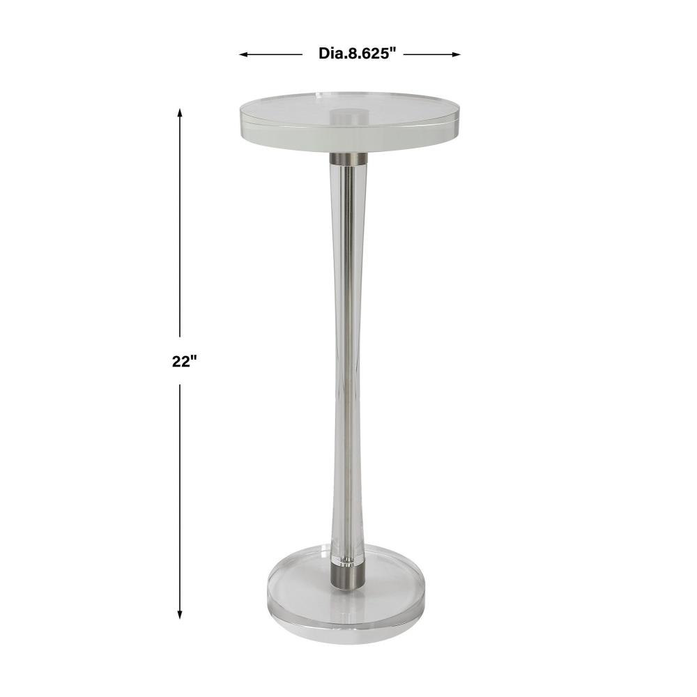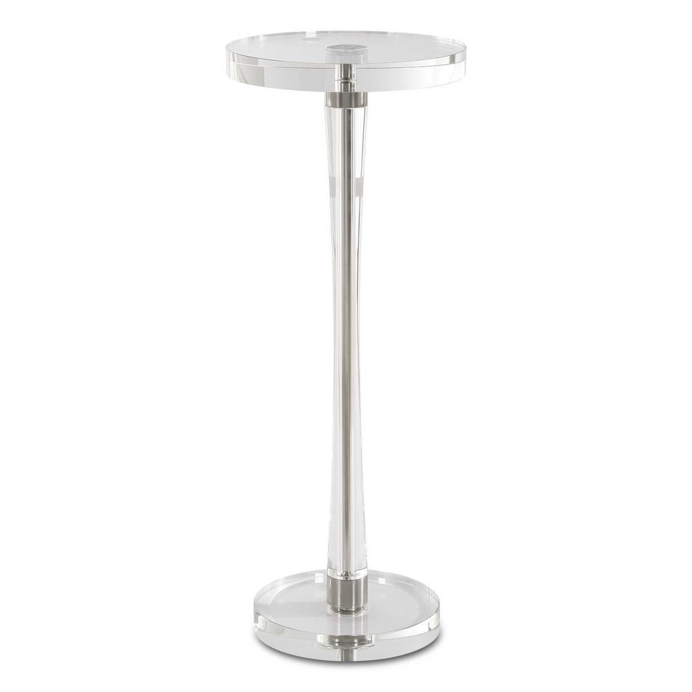 Crafted Almost Entirely From Crystal, This Drink Table Adds An Elegant Touch To Any Space. The Tapered Post Is Accented With Iron Details Finished In Brushed Nickel.