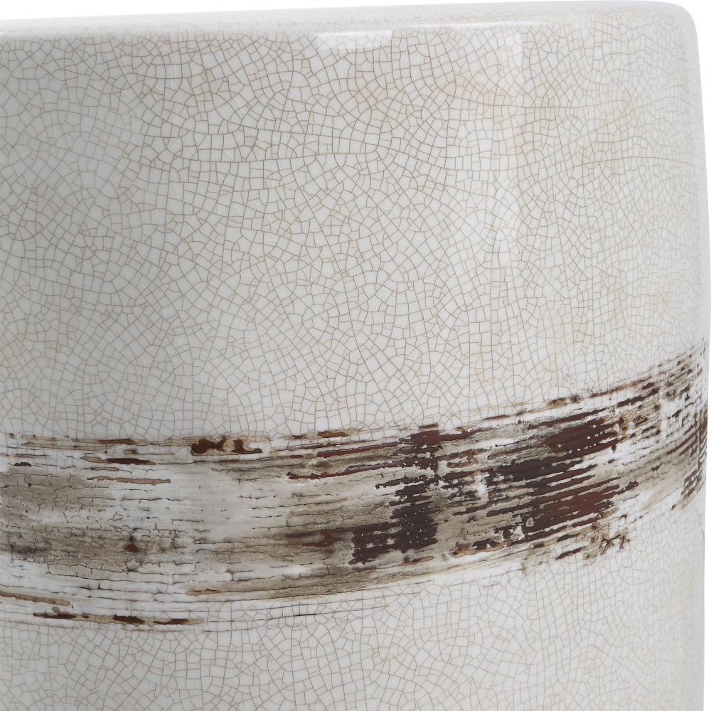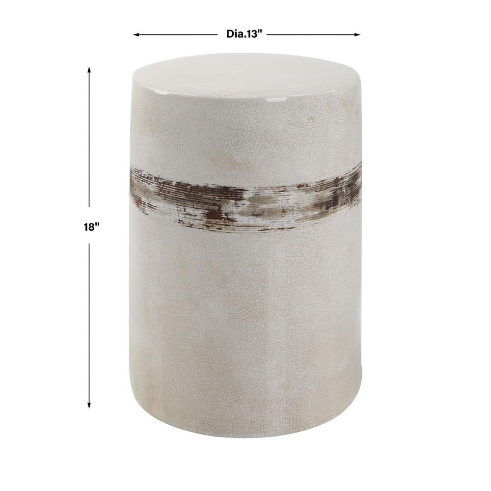 Showcasing A Rustic Casual Look, This Ceramic Garden Stool Features An Off-white Crackle Glaze With Distressed Rust Brown Details And Noticeable Ribbed Texture. May Be Used Outdoors, But Protection From Freezing Temperatures Is Recommended.