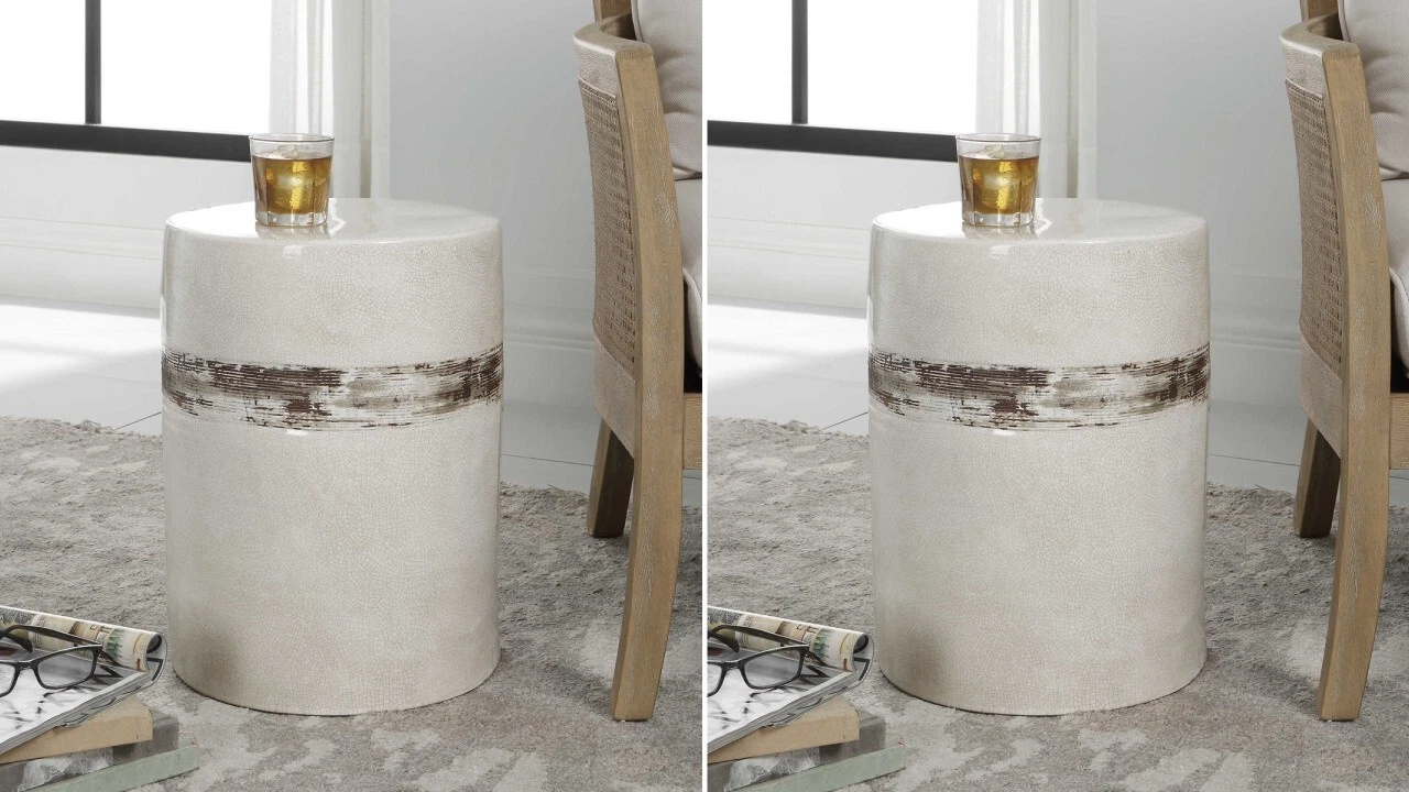 PAIR OF MODERN COMANCHE CERAMIC GARDEN STOOL ACCENT END TABLES UTTERMOST 25287