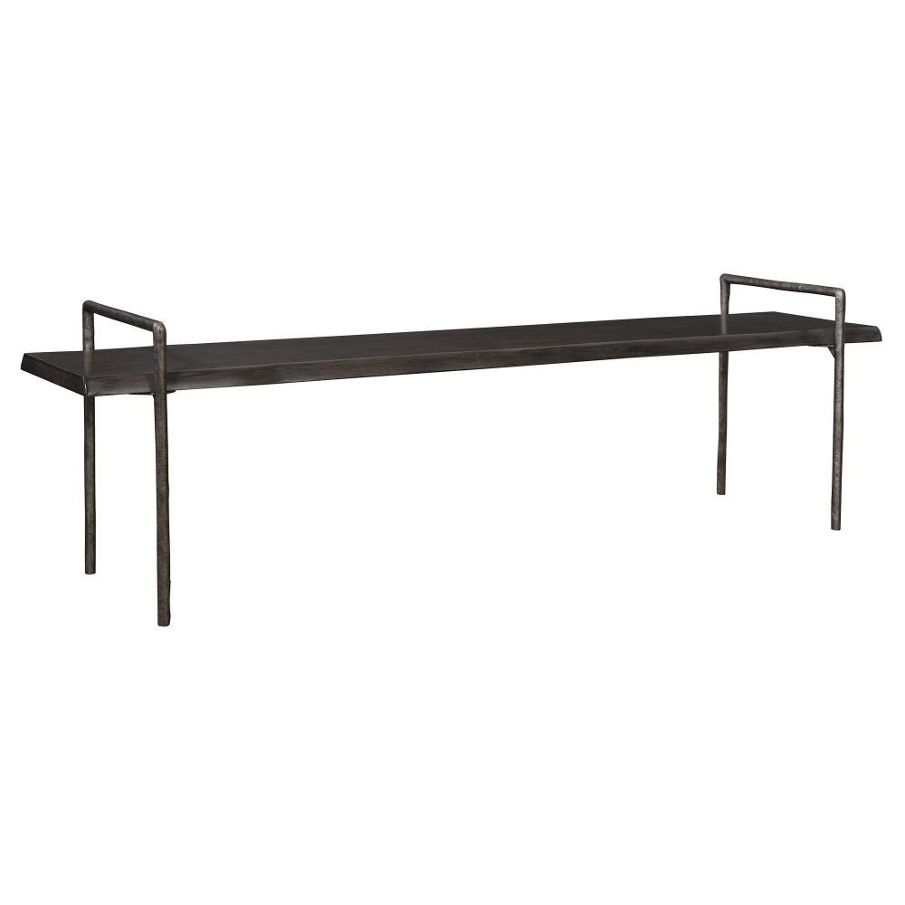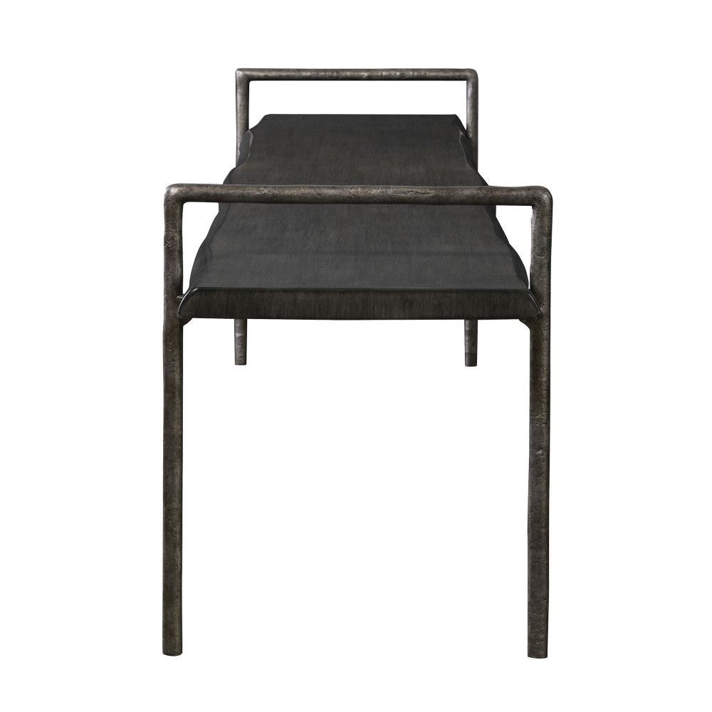 Modern Lodge Styling, Featuring A Solid Acacia Wood Seat With A Live Edge Look Stained In A Dark Gray With An Organically Textured Iron Frame Finished In Tarnished Silver.