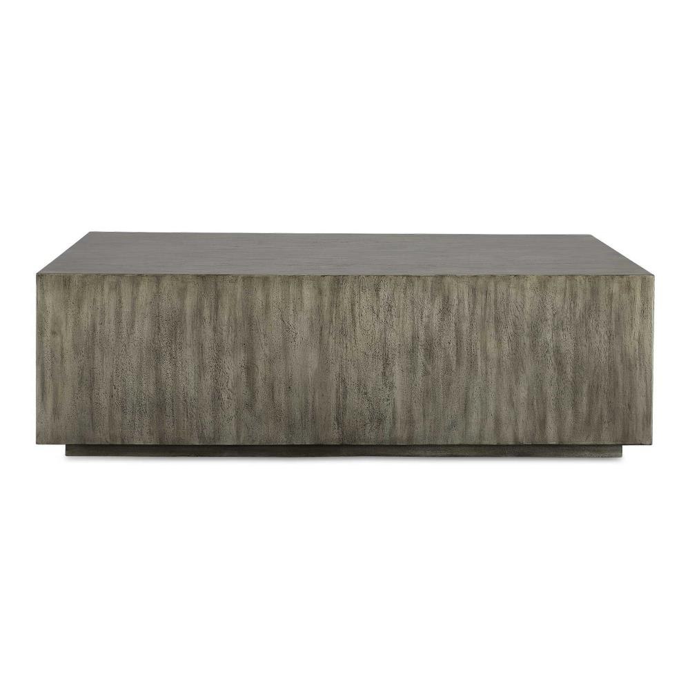 Featuring A Low Profile, This Modern Coffee Table Is Layered In A Warm Metallic Gray Finished Veneer With A Floating Pedestal Base.