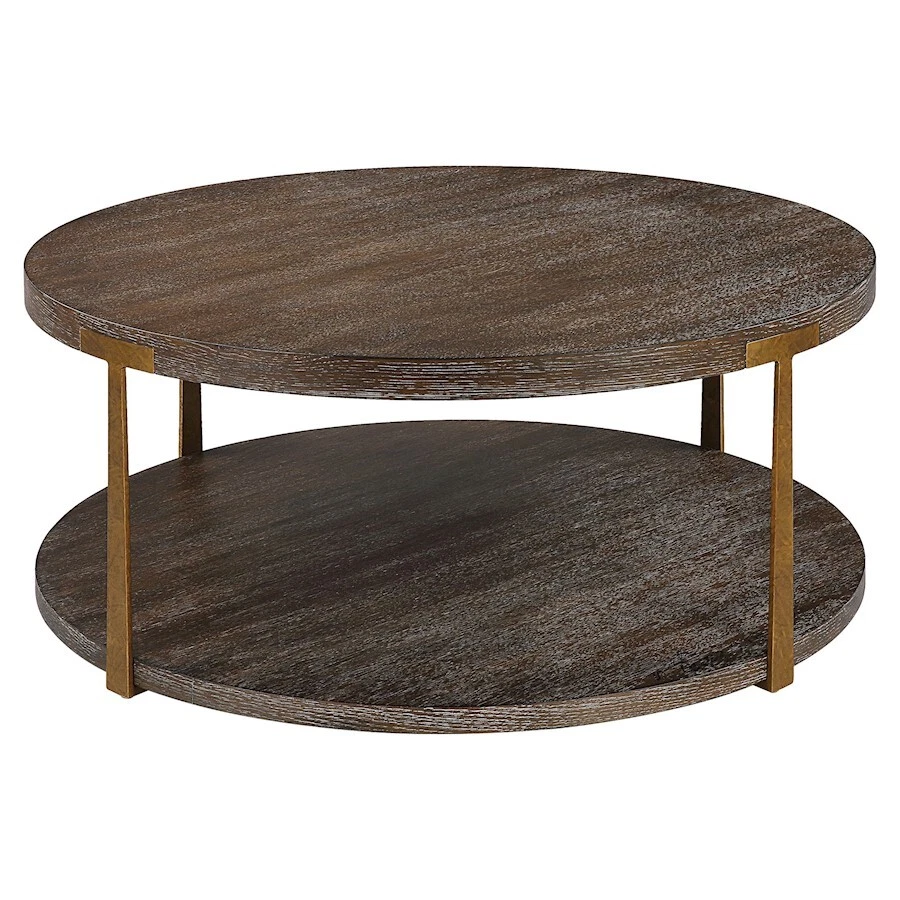Uttermost Palisade Round Wood Coffee Table, Oak Veneer - 25555