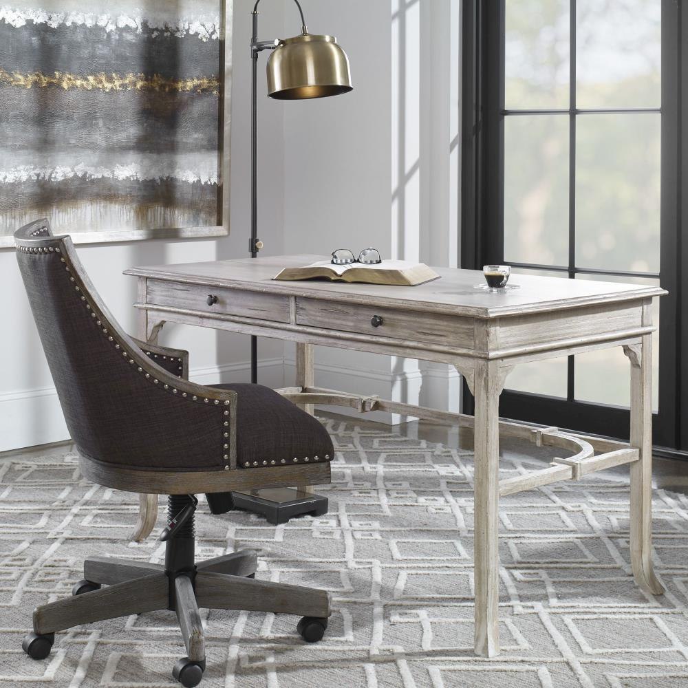Plantation-grown Mango Wood Makes Up The Solid, Carved And Dovetail Construction With Deep-grained Mindi Veneer In An Aged White Finish With Antique Brass Drawer Pulls.