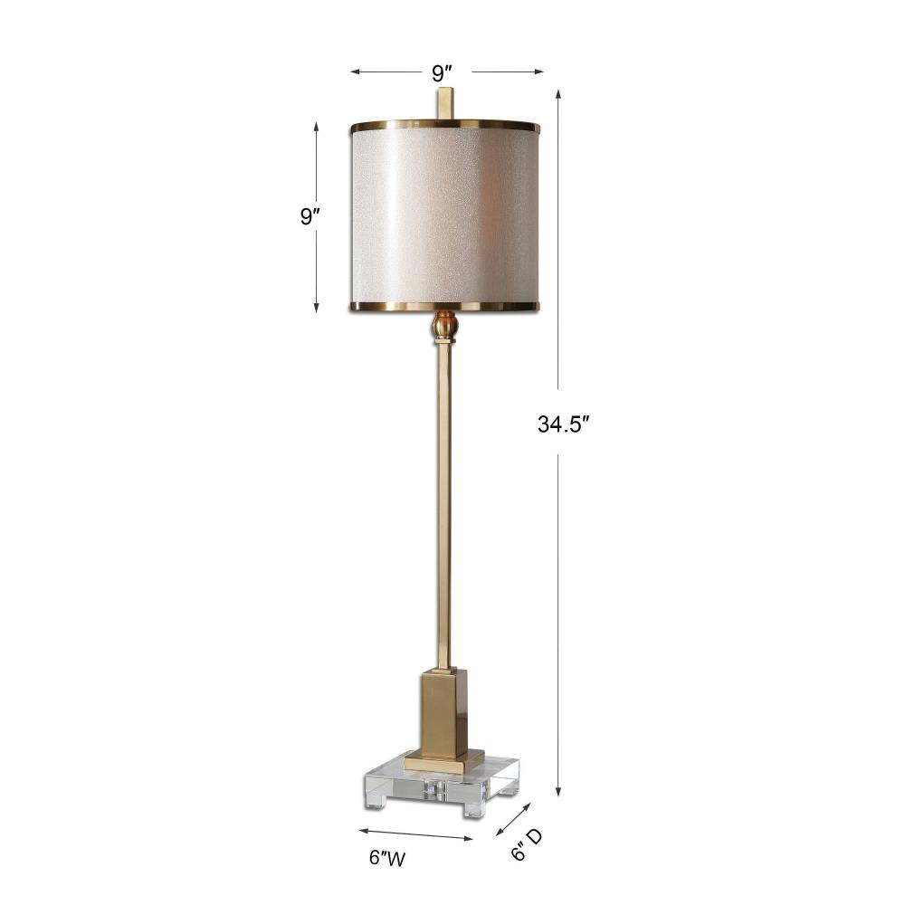 Brushed Brass Plated Metal Accented With A Crystal Foot. The Double Hardback Shades Are A Golden Champagne Inner Shade With A Warm Champagne, Silken Sheer Outer Shade And Metal Trim.