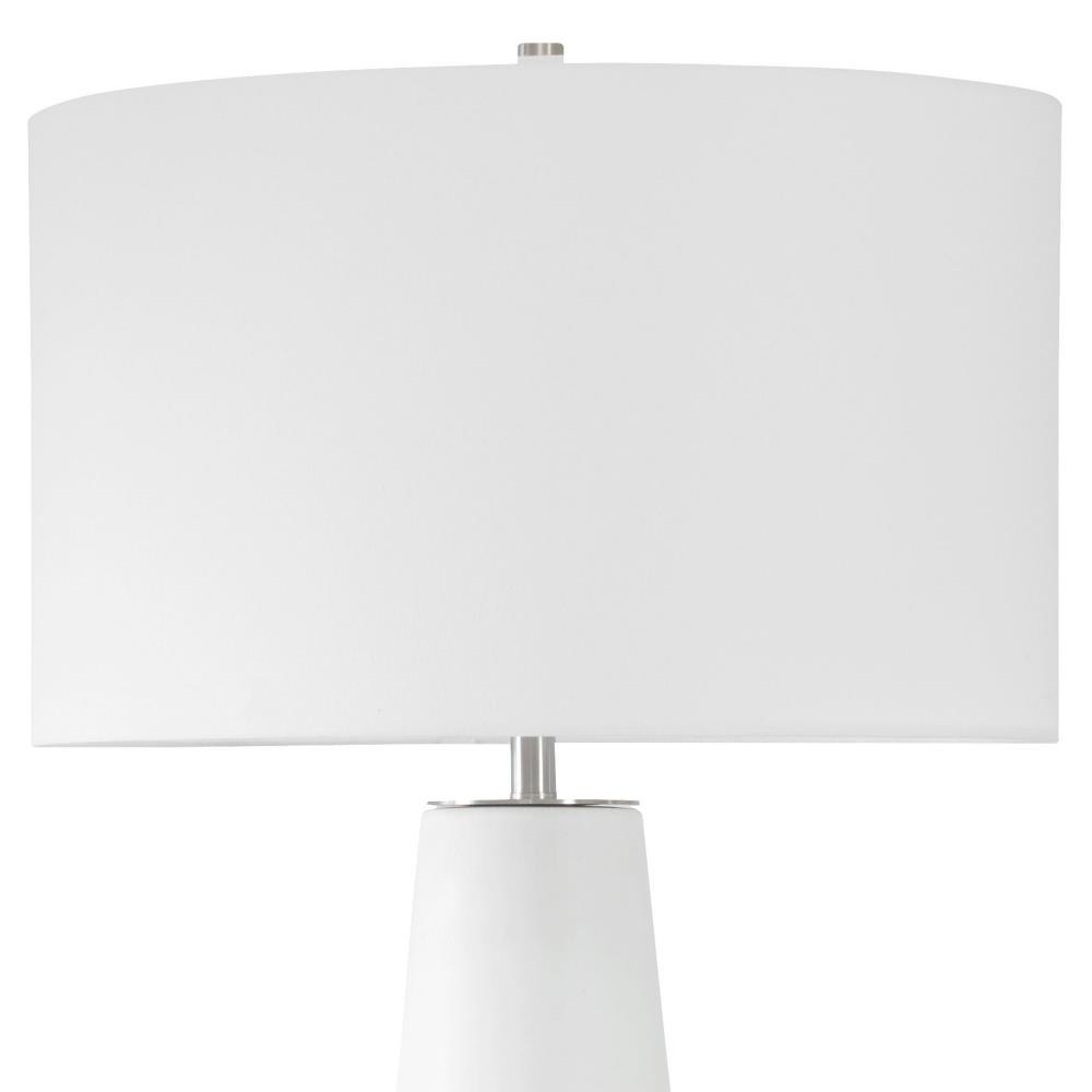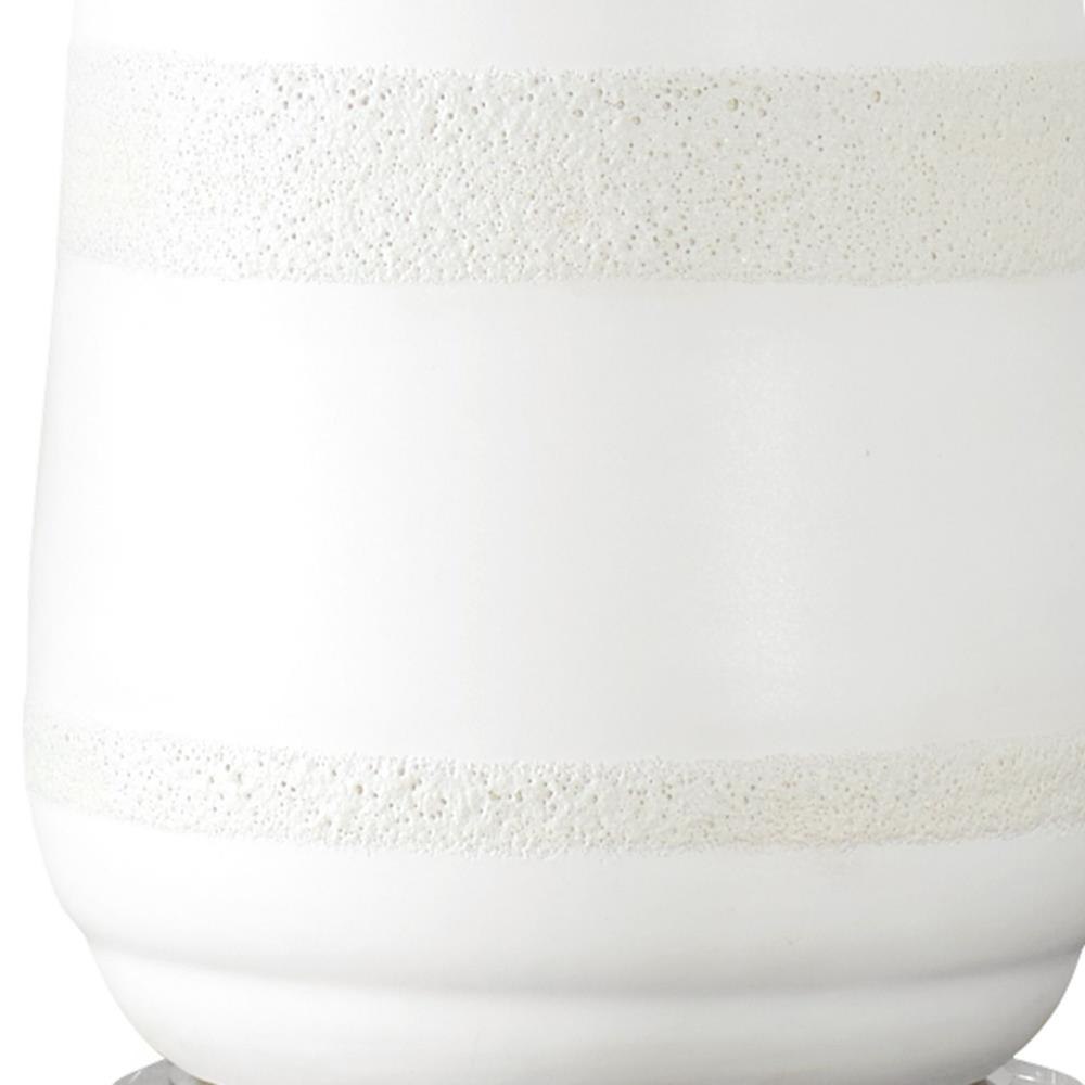 Showcasing A Crackled Ivory Ceramic Base With Heavily Textured Dove Gray Bands For A Touch Of Earthy Elegance. Resting On A Thick Crystal Foot And Accented With Brushed Plated Nickel Finishes, This Lamp Brings A Serene Sophistication To Any Room. The Round Drum Shade Is Covered In A Crisp White Linen Fabric. Due To The Nature Of Fired Glazes On Ceramic Lamps, Finishes Will Vary Slightly.