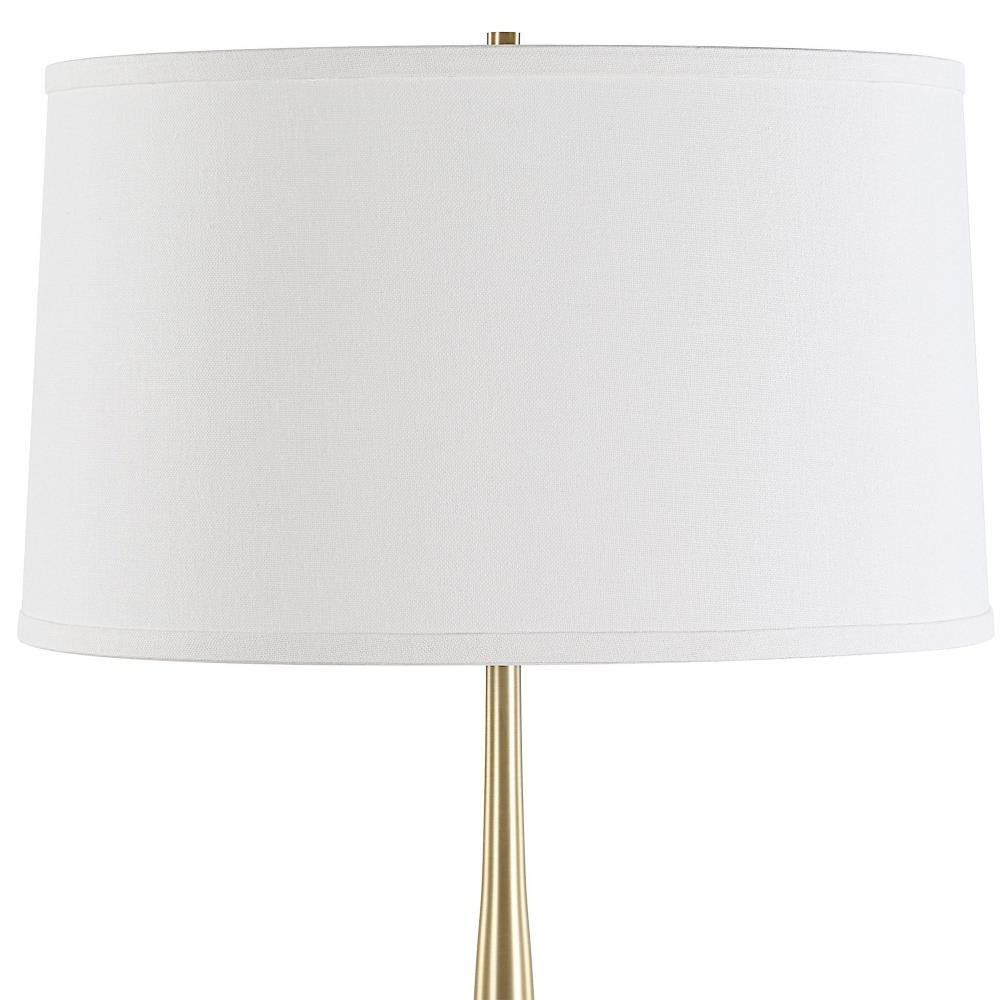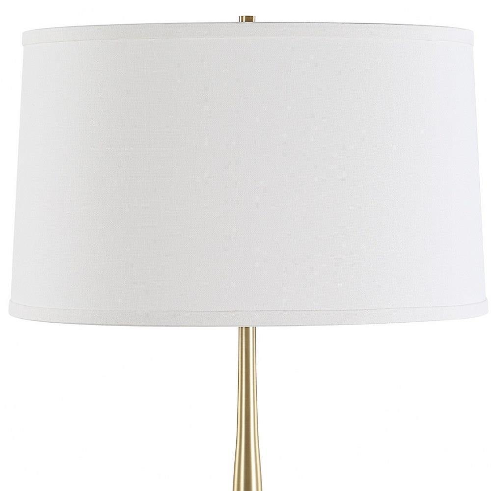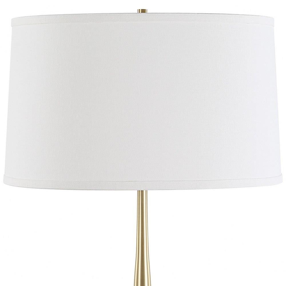 The Booker Table Lamp Showcases A Brown Marble Square Foot Accented With Plated Antique Brass Spindle Base And Hardware. The Slightly Tapered Round Hardback Shade Is Covered In A Casual White Linen Fabric With Natural Slubbing.