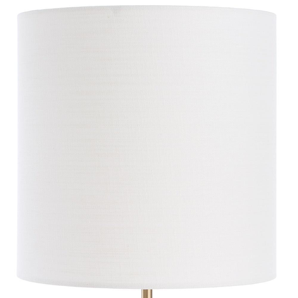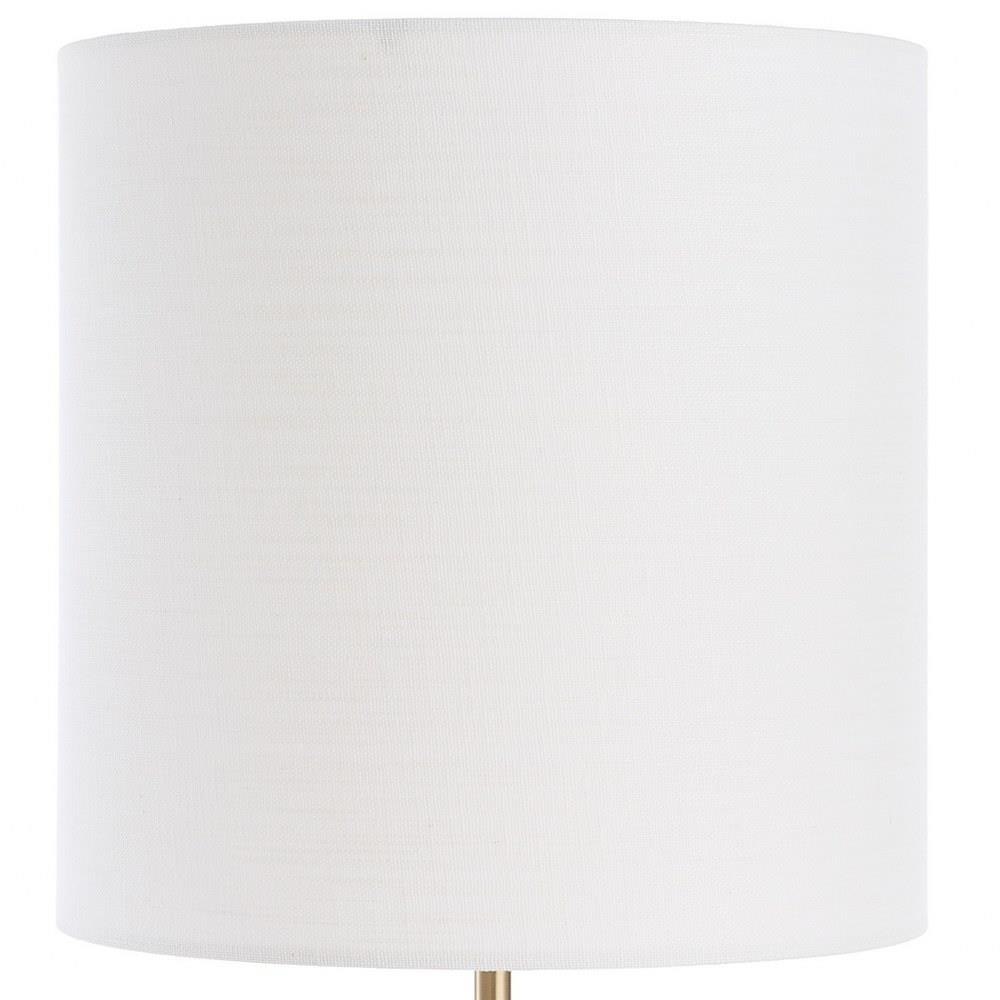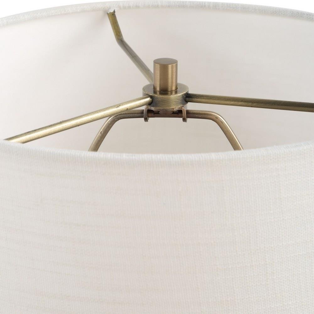 The Britwell Buffet Lamp Showcases A Sleek Emperador Dark Brown Marble Foot Separated By Plated Brass Details And Matching Fluted Base. The Round Hardback Drum Shade Is A Crisp White Linen Fabric.