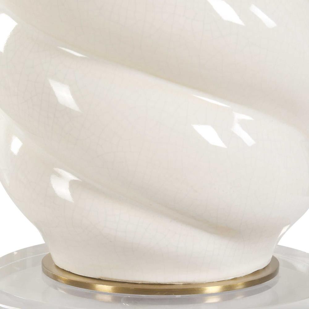 The Anneli Table Lamp Features A Gloss White Ceramic Base In A Tapered Swirl Design For A Timeless Coastal Appeal. The Addition Of A Crystal Foot And Antique Brass Plated Details Creates A Truly Unique And Eye-catching Look. The Round Hardback Shade Is Covered In A Crisp White Linen Fabric.