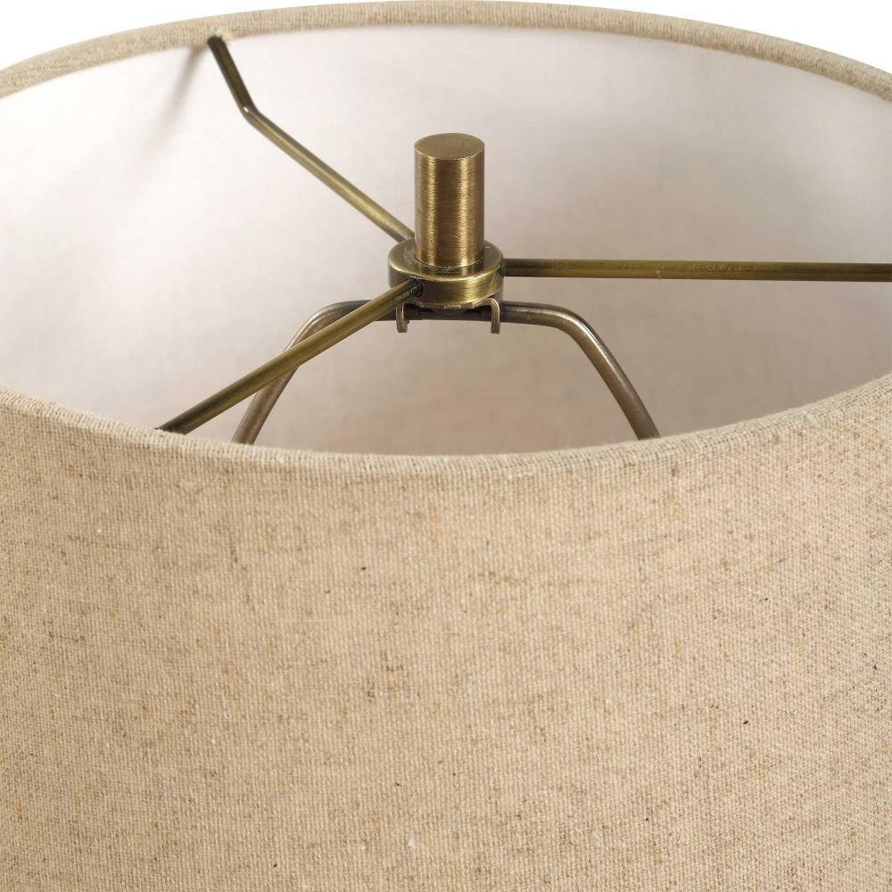 A Timeless Design, This Buffet Lamp Boasts A Rich Emperador Brown Marble Base With Ivory Veining Paired With Decorative Brass Plated Details That Adds A Touch Of Elegance. The Tall, Tapered Round Hardback Shade Is Covered In A Crisp White Linen Fabric.