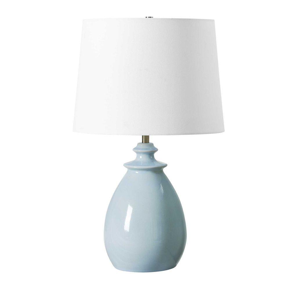The Lorene Table Lamp Showcases A Classic Ceramic Base With Updated Features, Finished In A Soothing Light Blue Glaze, Accented With Brushed Nickel Plated Details. The Tapered Round Hardback Shade Is Covered In A Casual White Linen Fabric. Due To The Nature Of Fired Glazes On Ceramic Lamps, Finishes Will Vary Slightly.