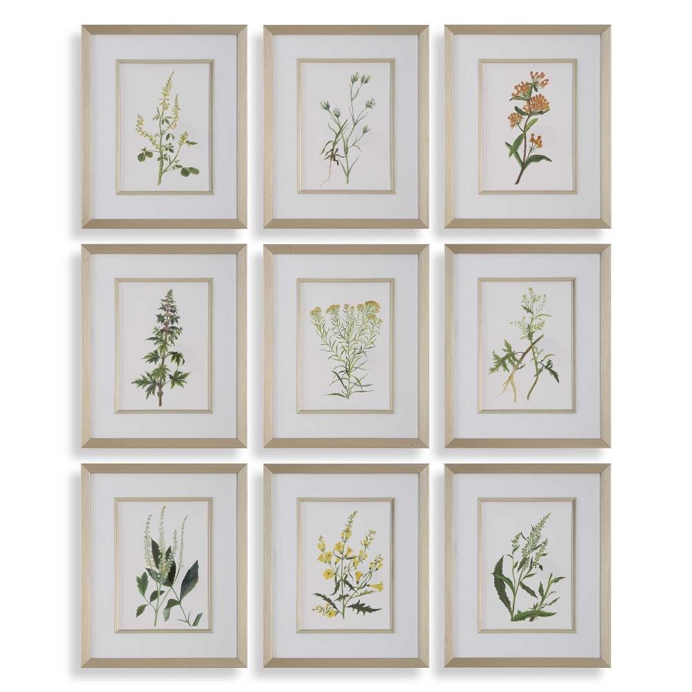 Traditional Subject Matter Meets Contemporary Framing, This Set Of Botanicals Infuse Any Space With The Calming Essence Of The Outdoors. Each Work Of Art Is Accented By A Sleek Champagne Frame And Matching Fillet And Finished With A White Linen Mat. Each Piece Is Placed Under Protective Glass.