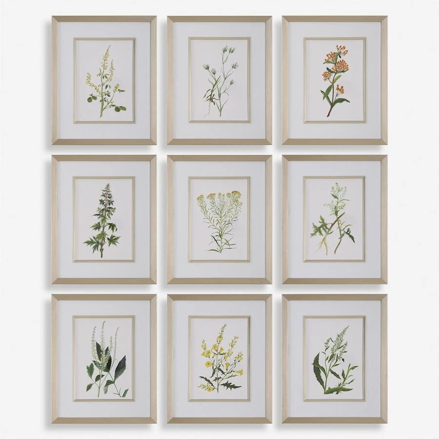 Uttermost Botanical Flowers Framed Prints, Set of 9 - 32339