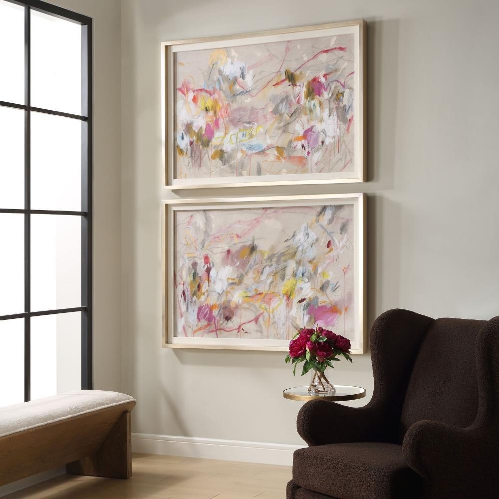 Immerse Yourself In The Vibrant Energy Of City Life With Our Metropolitan Rush, A Set Of Two Oversized Abstract Framed Prints. This Bright Color Palette Celebrates The Ceaseless Movement And Eclectic Spirit Of The Metropolis. Each Print Is Complemented By A White Linen Liner And A Brushed Champagne Silver Frame. Artwork By Maja Gunnarsdottir.