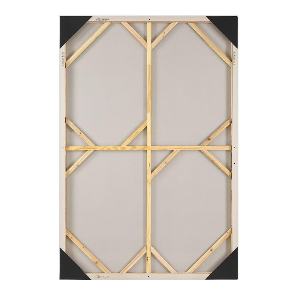 This Hand Painted Canvas Showcases Large Geometric Brushstrokes. Dark Navy And Warm Shades Of Gray Are Complemented By Pops Of Light Sienna And Gold Leaf Accents. A Gold Leaf Gallery Frame Surrounds The Abstract Artwork. Due To The Handcrafted Nature Of This Artwork, Each Piece May Have Subtle Differences. This Piece May Be Hung Horizontal Or Vertical.