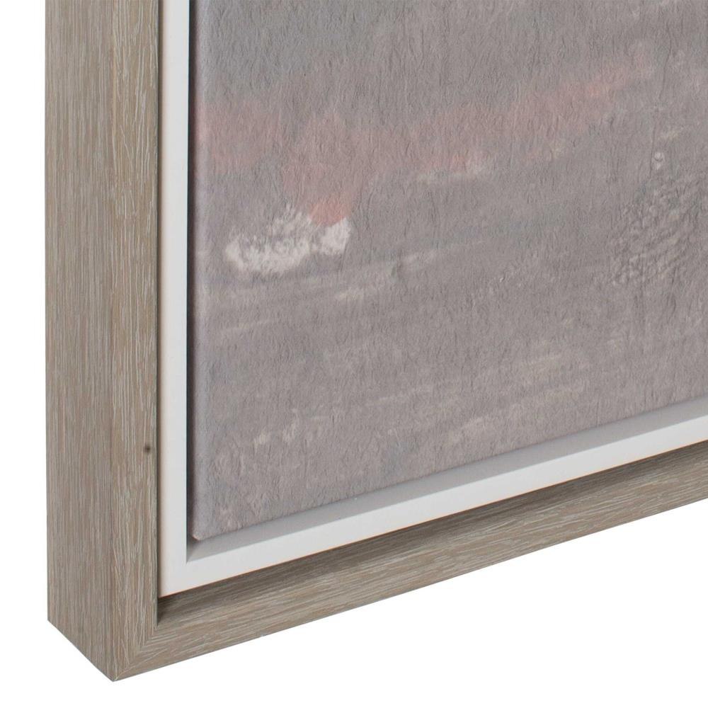 Bracing Depicts A Turbulent Sky, Dominated By Shades Of White And Gray, Contrasted With A Muted Foreground Of Browns, Greens, And Pinks. A Double Gallery Frame, In White And Gray Washed Wood, Encases The Artwork. Each Canvas Is Proudly Handcrafted And Printed In The USA. Artwork By Pamela Munger.