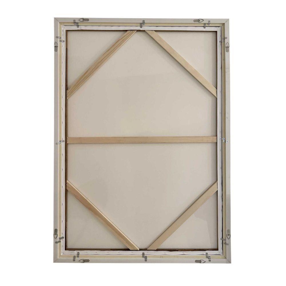 Lowlands Framed Canvas Displays An Abstract Landscape In A Palette Of Grays, Blues, And Warm Browns. A Double Gallery Frame, In White And Gray Washed Wood, Encases The Artwork. Each Canvas Is Proudly Handcrafted And Printed In The USA. Artwork By Liz Jardine.