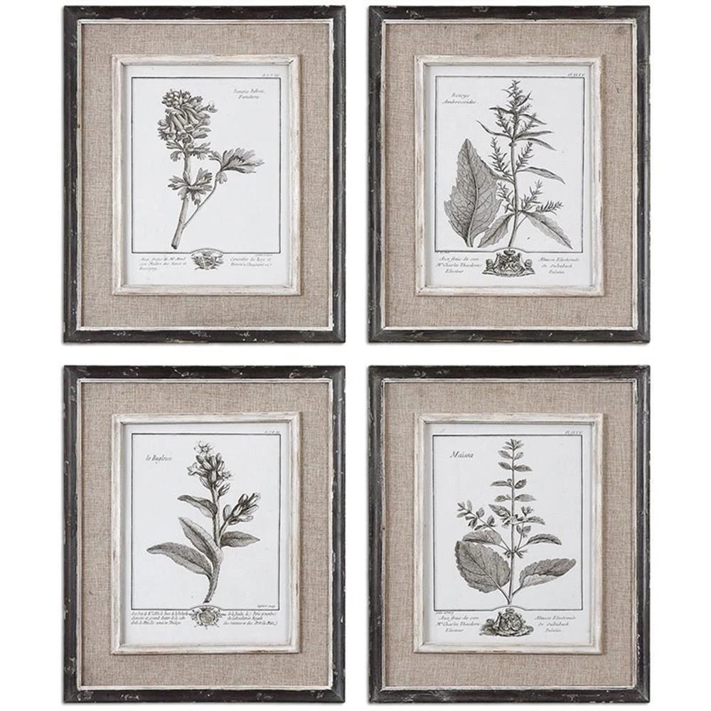 Uttermost Casual Gray Study Wood Flax and Linen Framed Art in Black (Set of 4)