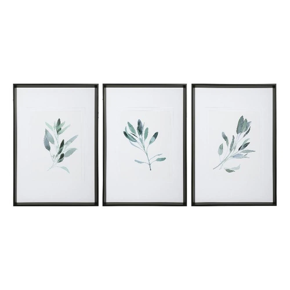 Uttermost Simple Sage Plastic Glass Paper Prints in Black/Green (Set of 3)