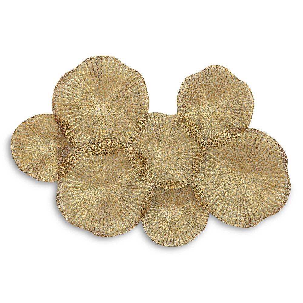 Resembling Layered Lotus Leaves, This Pierced Metal Wall Art Is Finished In A Lightly Antiqued Gold. May Be Hung Horizontal Or Vertical.