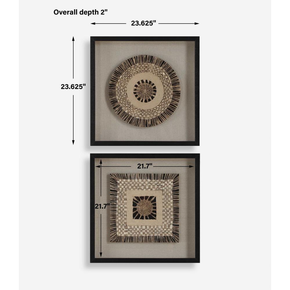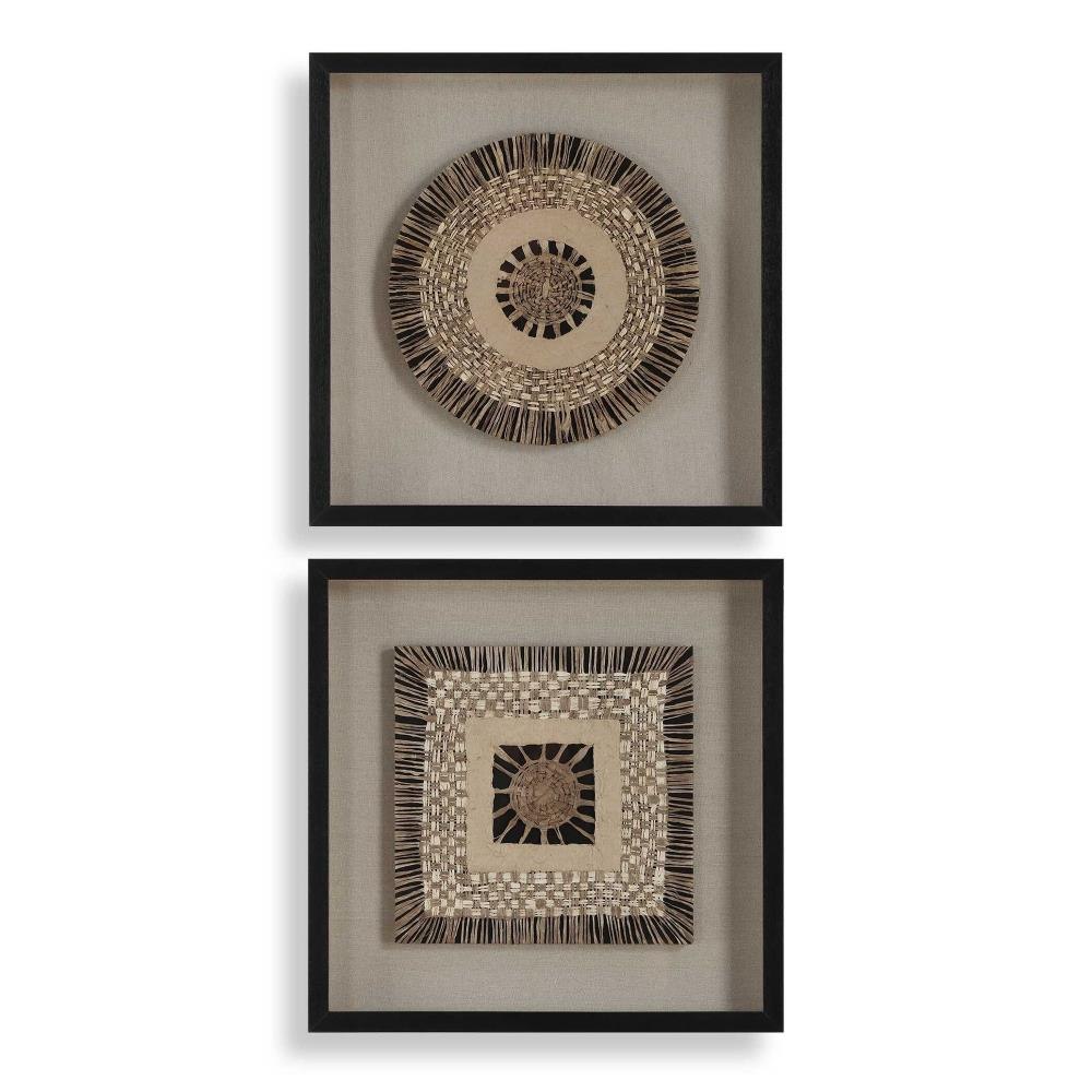 The Intertwine Shadow Boxes Are Woven Together Like An Heirloom Tapestry. Featuring Knit Paper Dyed In Natural Earth Tones Over A Beige Linen Backing And Framed In Satin Black Finished Pine Wood.