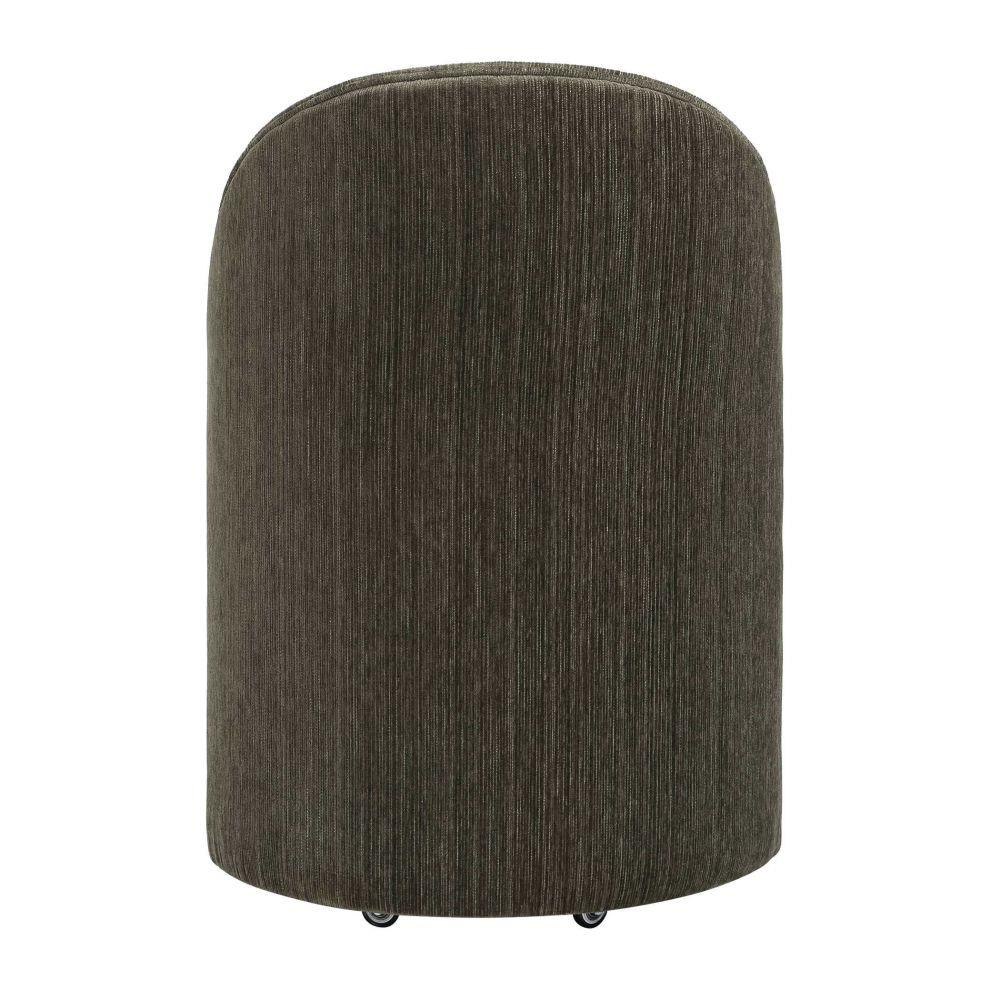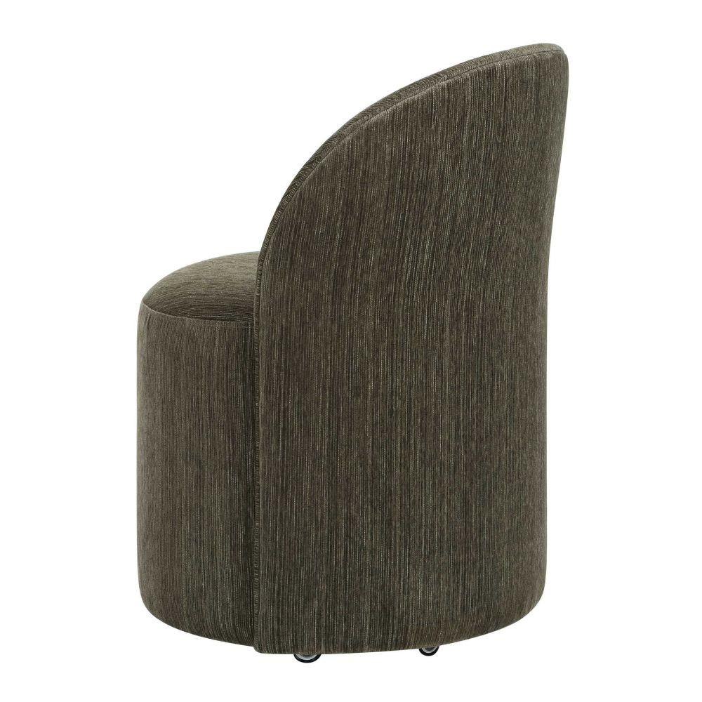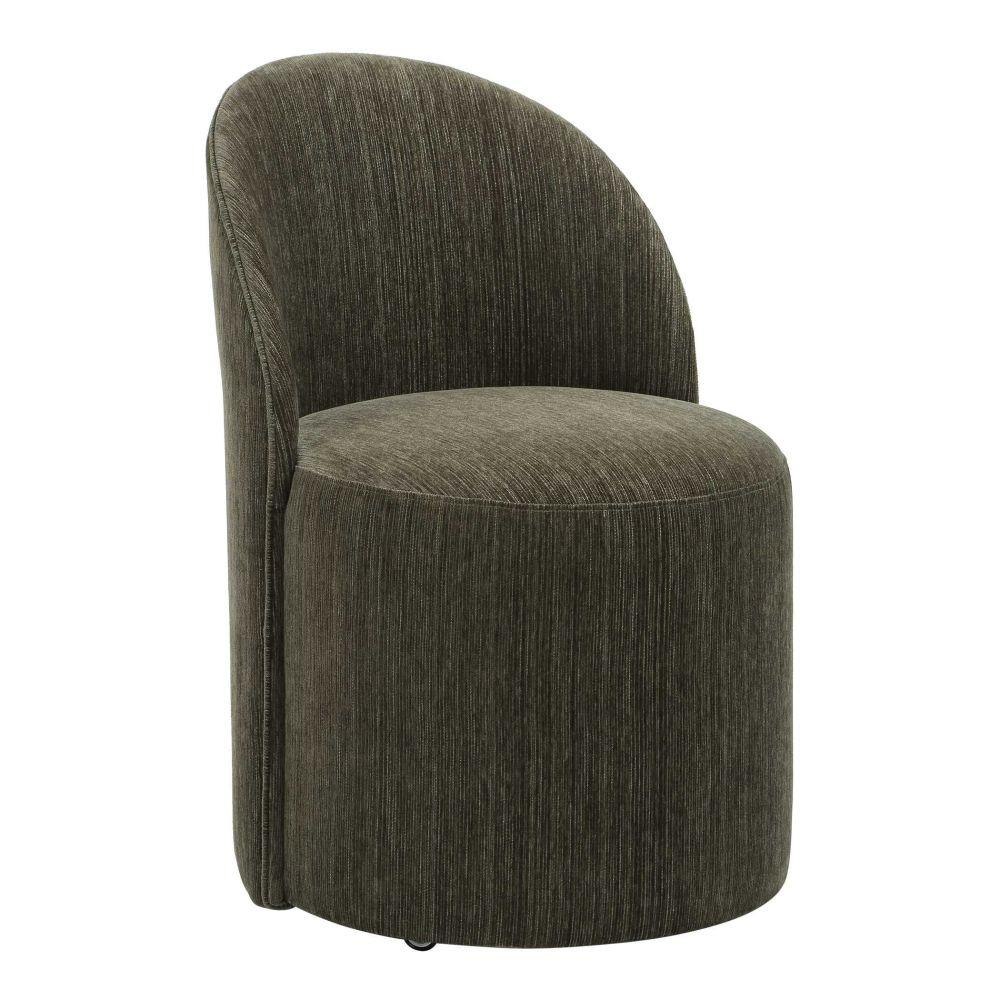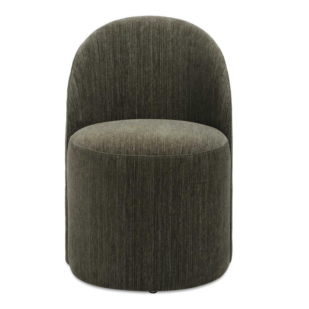 Inspired From Classic Vanity Seating But Proportioned For Dining, The Roll With It Chair Features Rolling Casters For Ease Of Use. Its Smooth Lines Are Fully Upholstered In A Rich Textured Chenille In Herb.