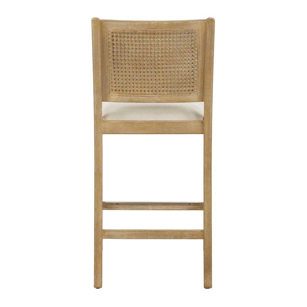 Casual Coastal Inspired Styling With Elevated Details In The Swooped Seat Frame In Solid Wood, Finished In Light Oak Ceruse. The Supportive Rattan Caned Back Is Paired With A Plush Seat Upholstered In A Frost Toned Polyester Fabric With A Toxin-free, Eco Friendly Treatment To Help Resist Water Based Stains. Brushed Nickel Metal Kick Plate.