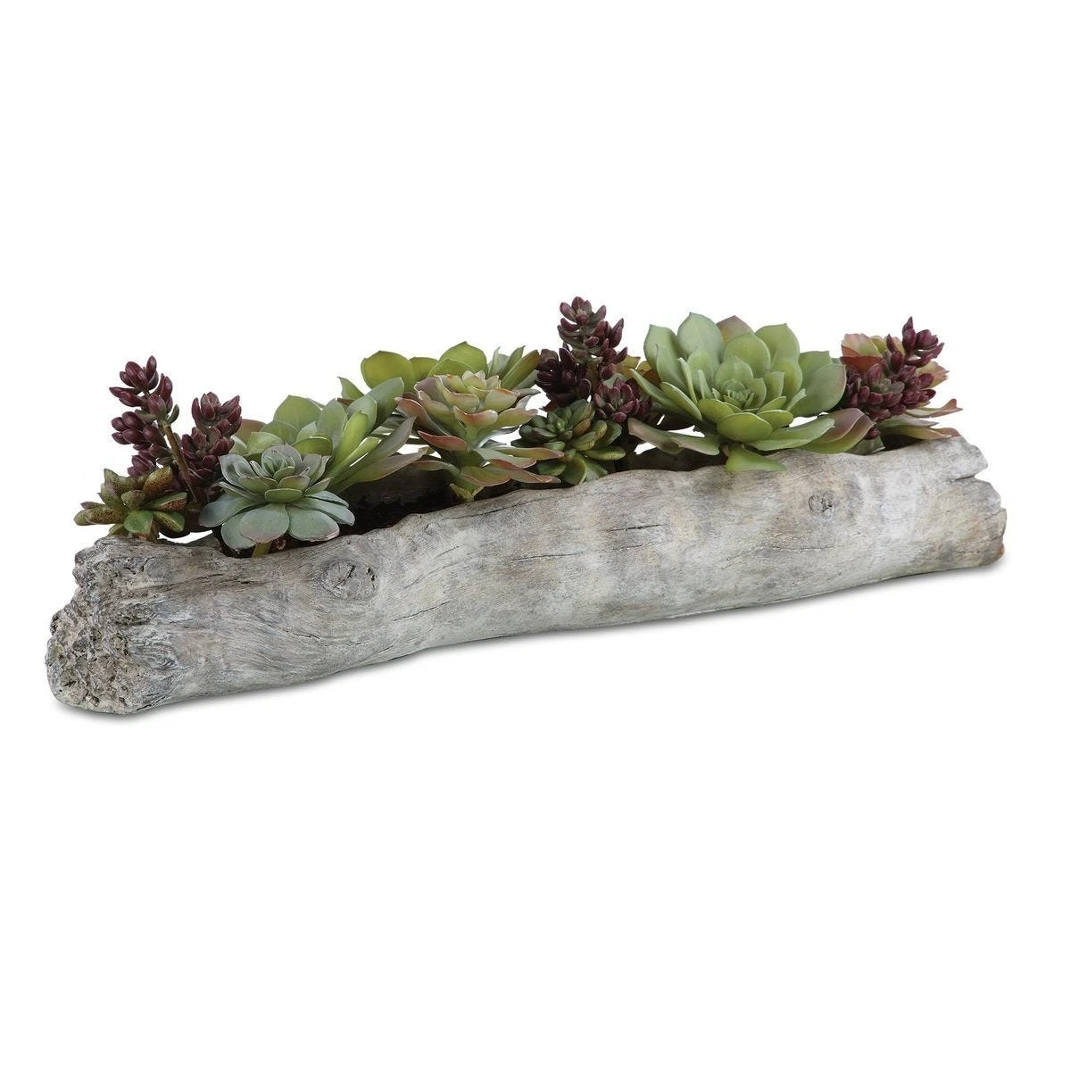 UTTERMOST 60174 CHARITA LUSH SUCCULENTS DRIFTWOOD LOG CONCRETE CONTAINER