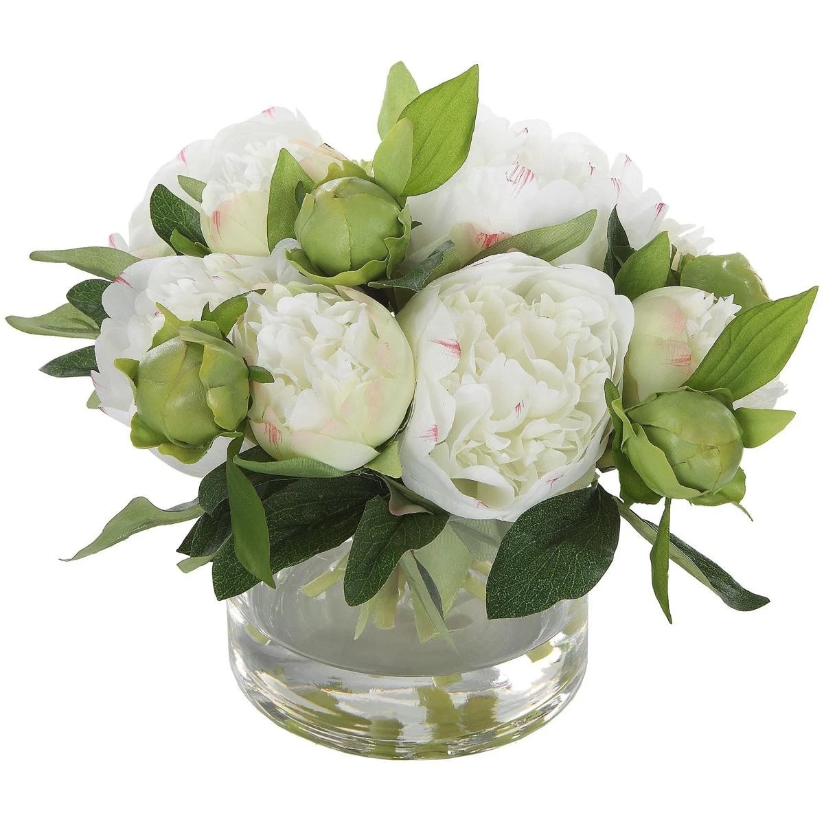 Uttermost 60198 Garden Peony White and Green with Clear Glass Bouquet