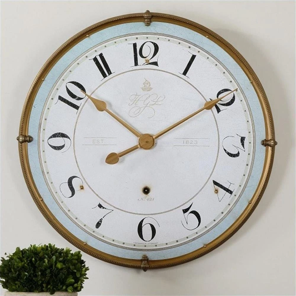 Uttermost Torriana Wood and Metal Wall Clock in Antique Gold/Pale Blue