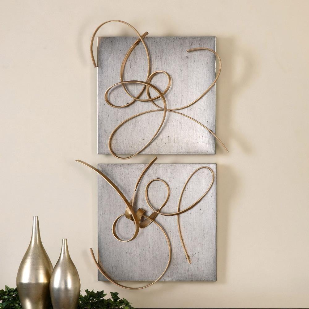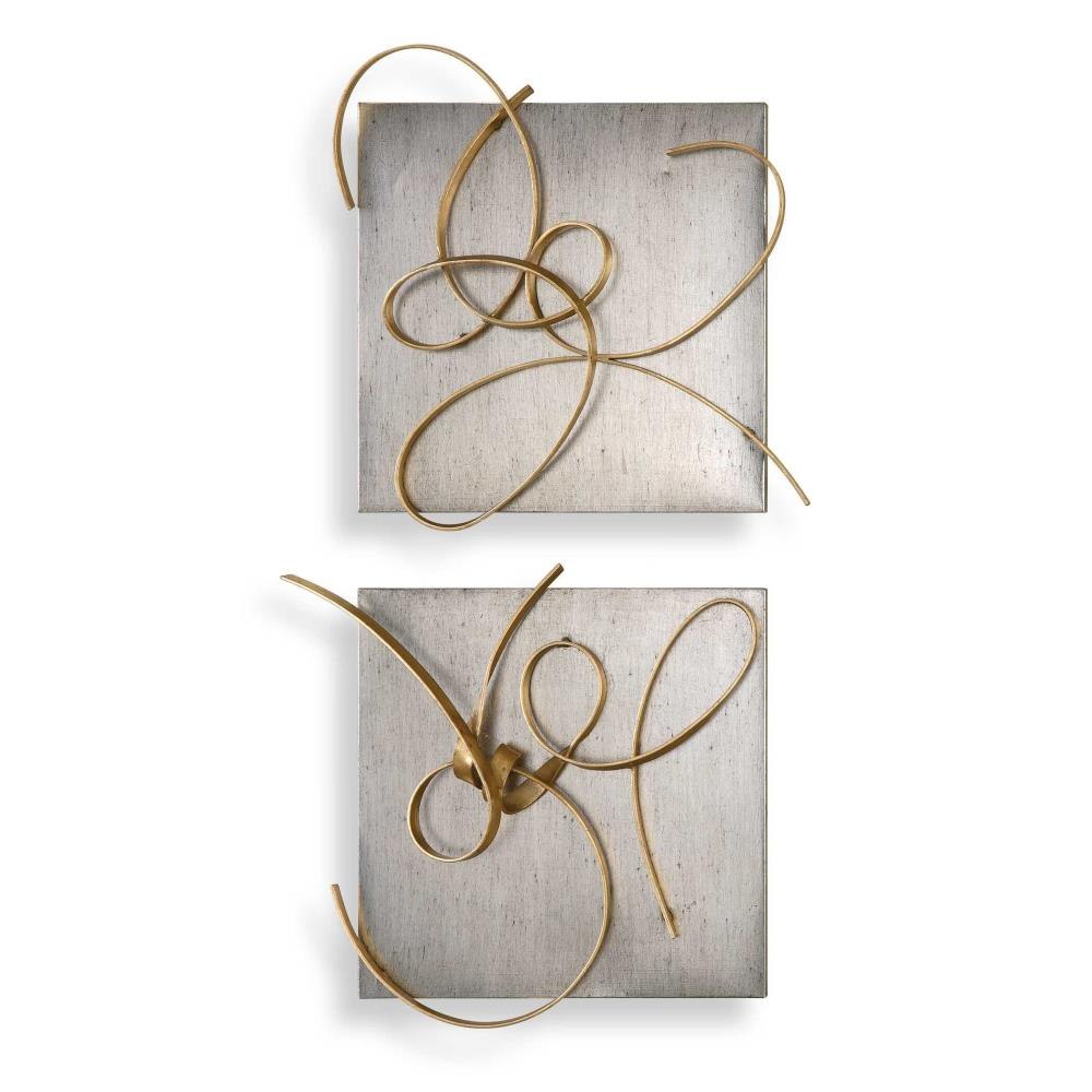 Abstract, Hand Forged, Gold Leaf Metal Art Attached To A Metal Plaque Finished In A Lightly Burnished Silver Leaf.