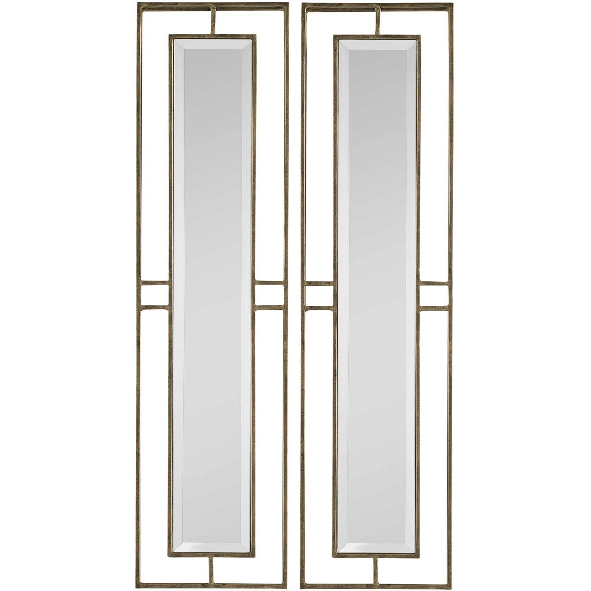 Uttermost 07082 Rutledge 30 X 8 inch Antiqued Gold Wall Mirrors, Set of 2