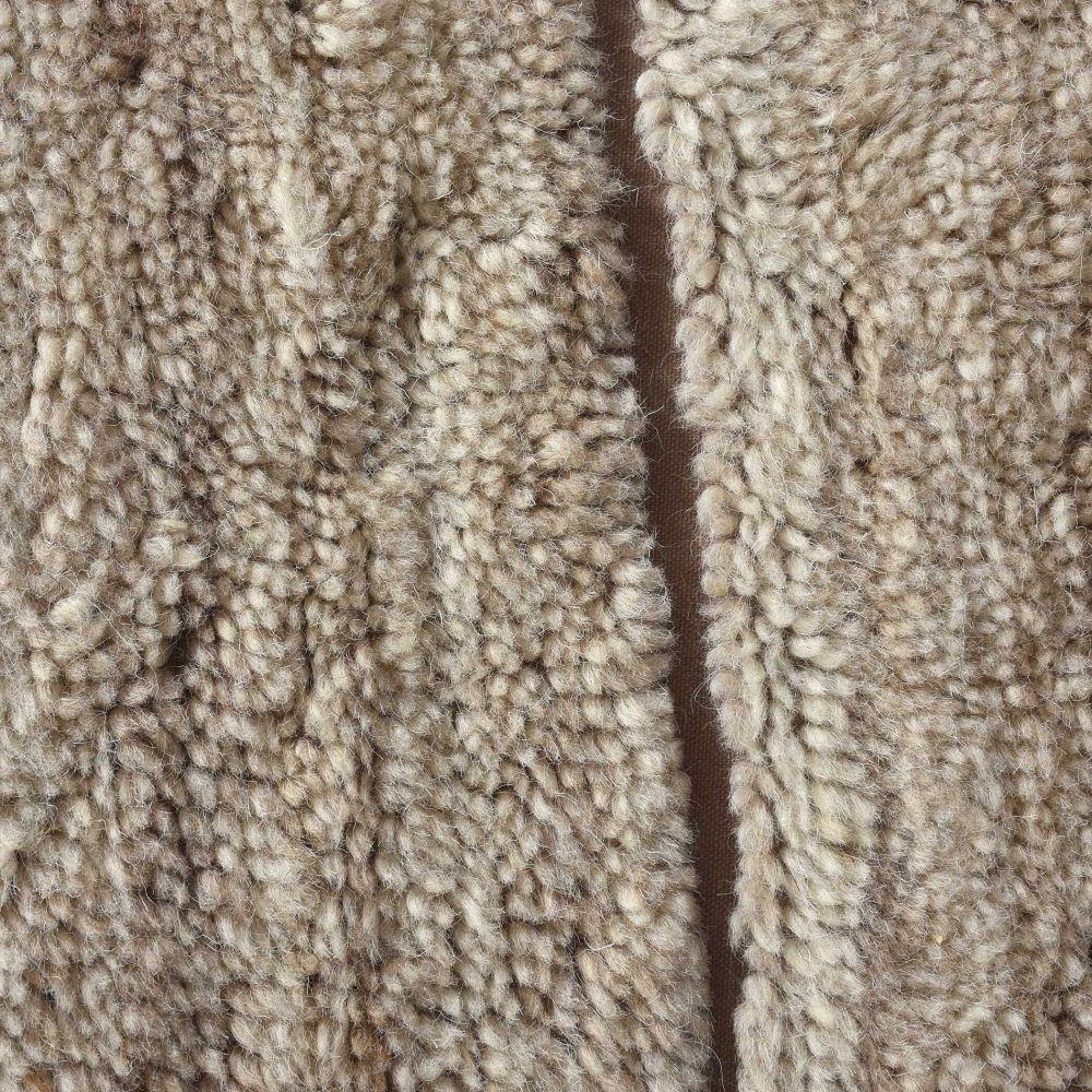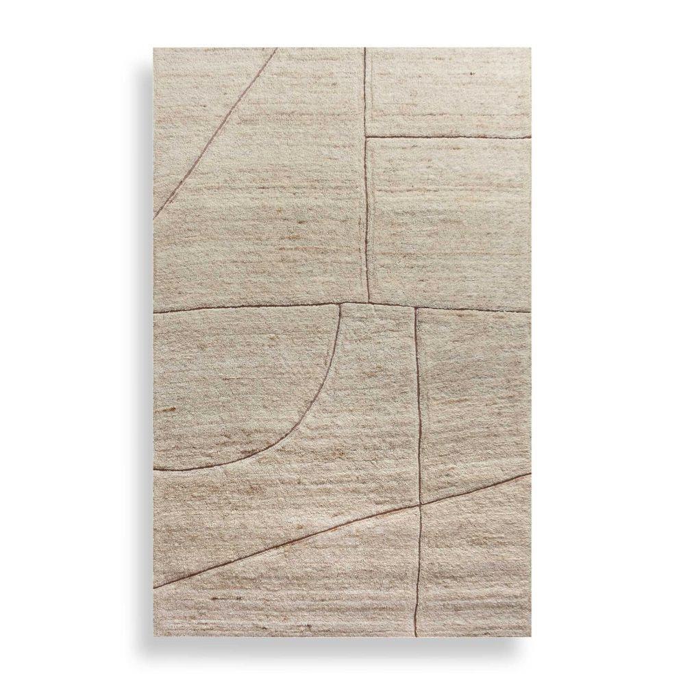 The Kenyan Rug Features Tufted Construction Using Undyed Wool In Beige And Brown Tones, Showcasing A Geometric Cutout Pattern With Complementing, Warm Chocolate Cotton Backing For A Casual Contemporary Feel.