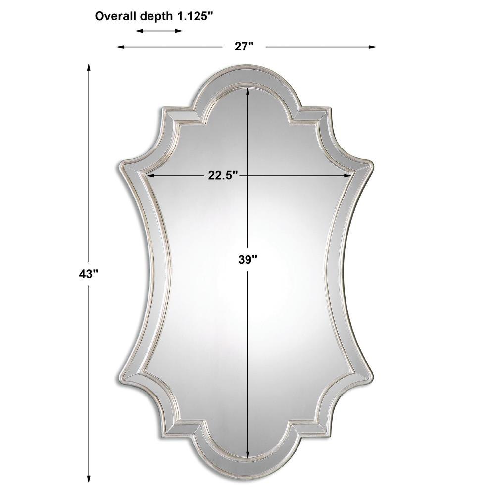 Gracefully Curved Polished Edged Mirror Facets Encased In A Lightly Antiqued Silver Leafed Frame.