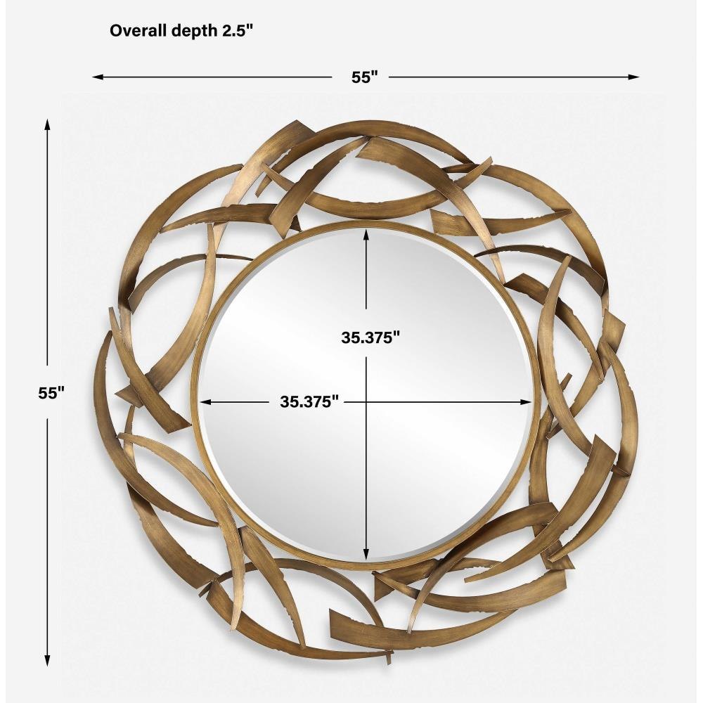 Elevate Your Space With Our Oversized Round Mirror, Adorned With Crescent-shaped Hand-forged Iron Details, Finished In A Heavily Antiqued Golden Bronze. Each Piece Boasts Intentional Jagged Edges, Adding Depth And Character To Any Room. Mirror Has A Generous 1 1/4" Bevel.