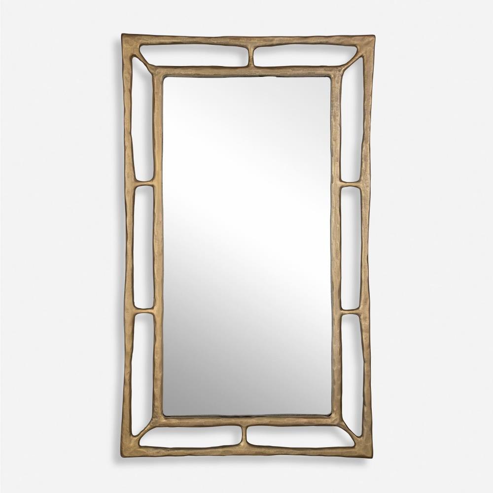 This Rectangle Mirror Is Crafted From Cast Aluminum, Showcasing Hand-forged Aesthetic With Its Subtle Asymmetrical Shape And Hammered Texture, Finished In A Plated Antiqued Brass. May Be Hung Horizontal Or Vertical.