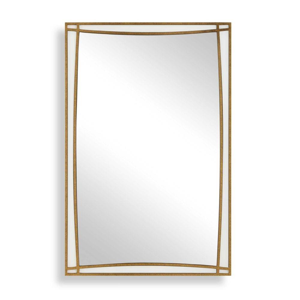 Elegantly Finished In Warm Antique Gold, This Unique Mirror Showcases Subtle Curved Inner Lines And Delicate White Glass Inlays That Together Create Depth And Visual Interest. May Be Hung Horizontal Or Vertical.