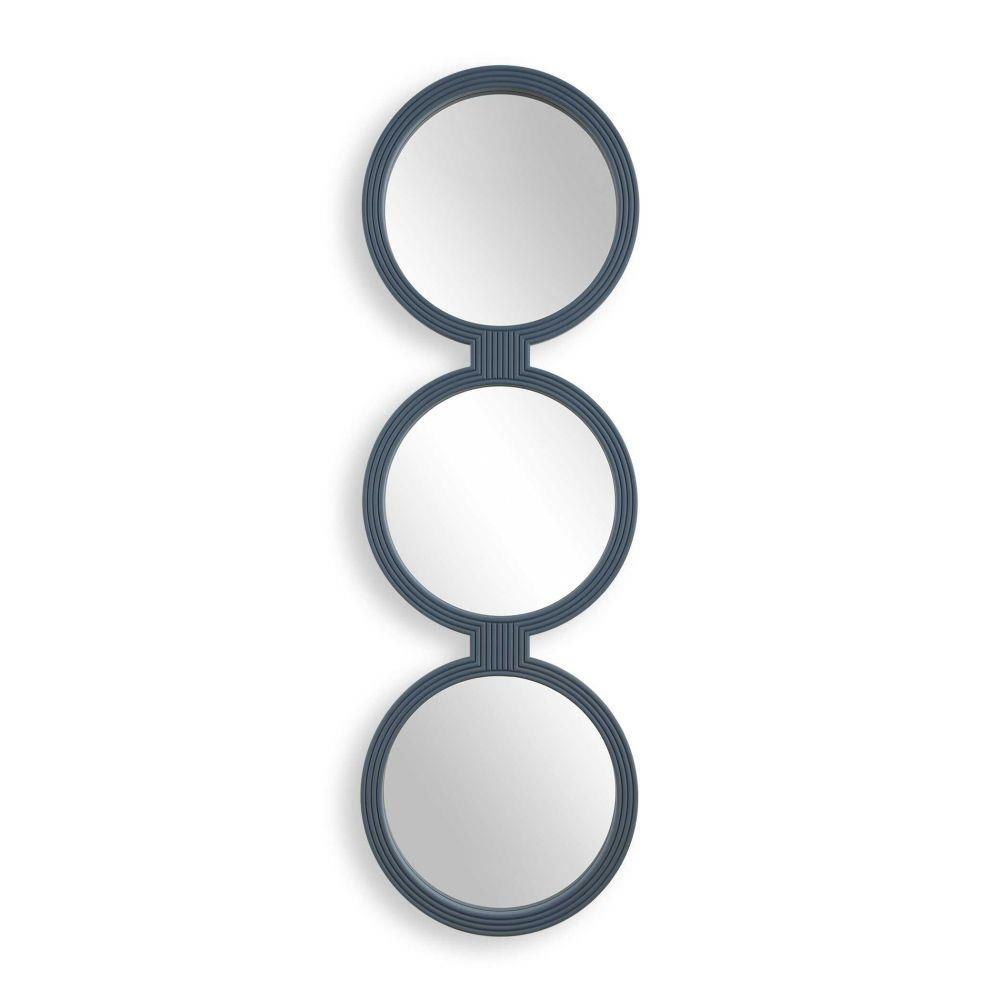 Three Interconnected Round Mirrors, Each Framed With A Continuous Ribbed Texture In A Muted Blue-gray Finish, Creating A Piece That Works As A Functional Focal Point In Your Space.