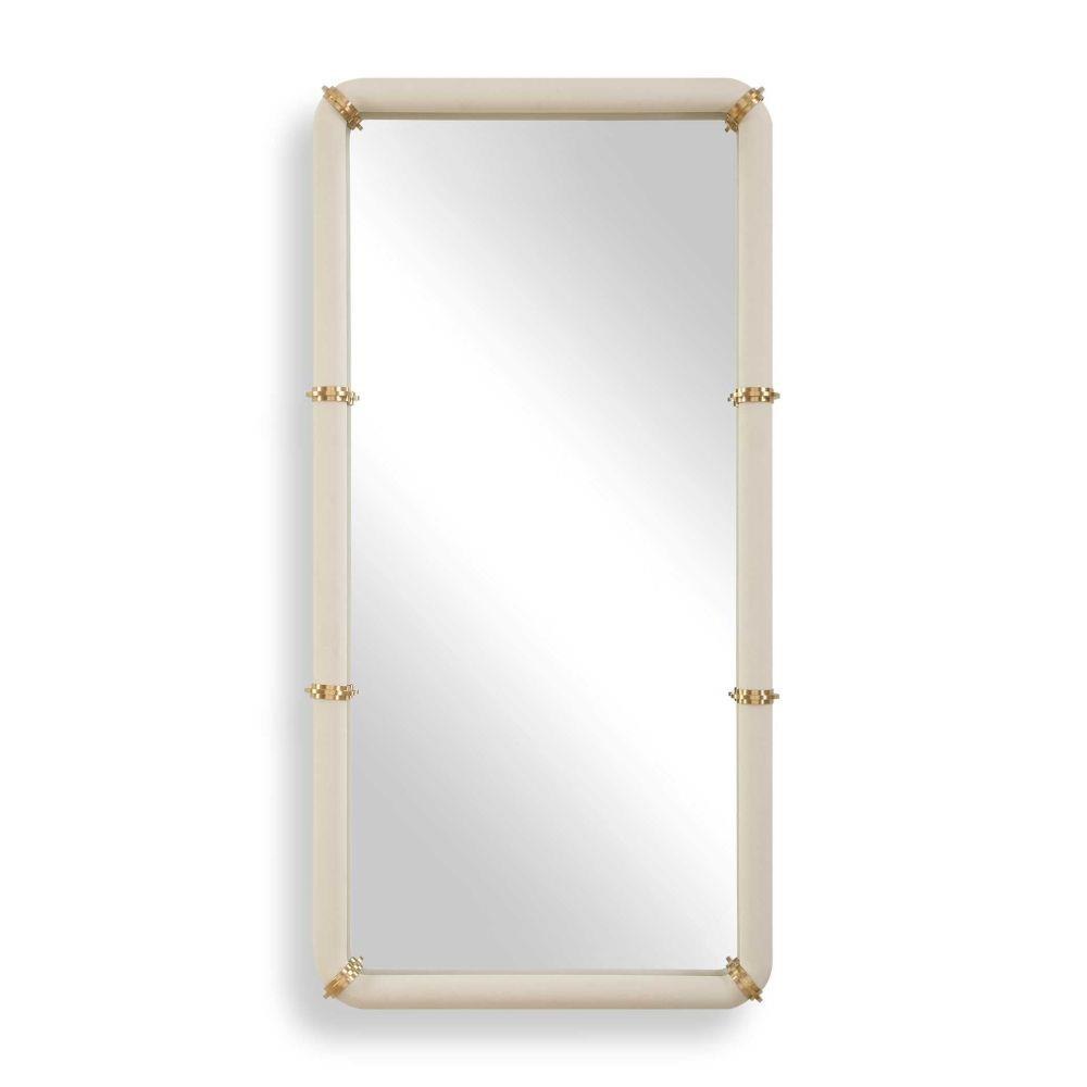 The Cyprus Mirror Showcases A White Faux Shagreen Leather Wrap Featuring Brass Plated Steel Bands That Help Elevate This Sophisticated Design. May Be Hung Horizontal Or Vertical.