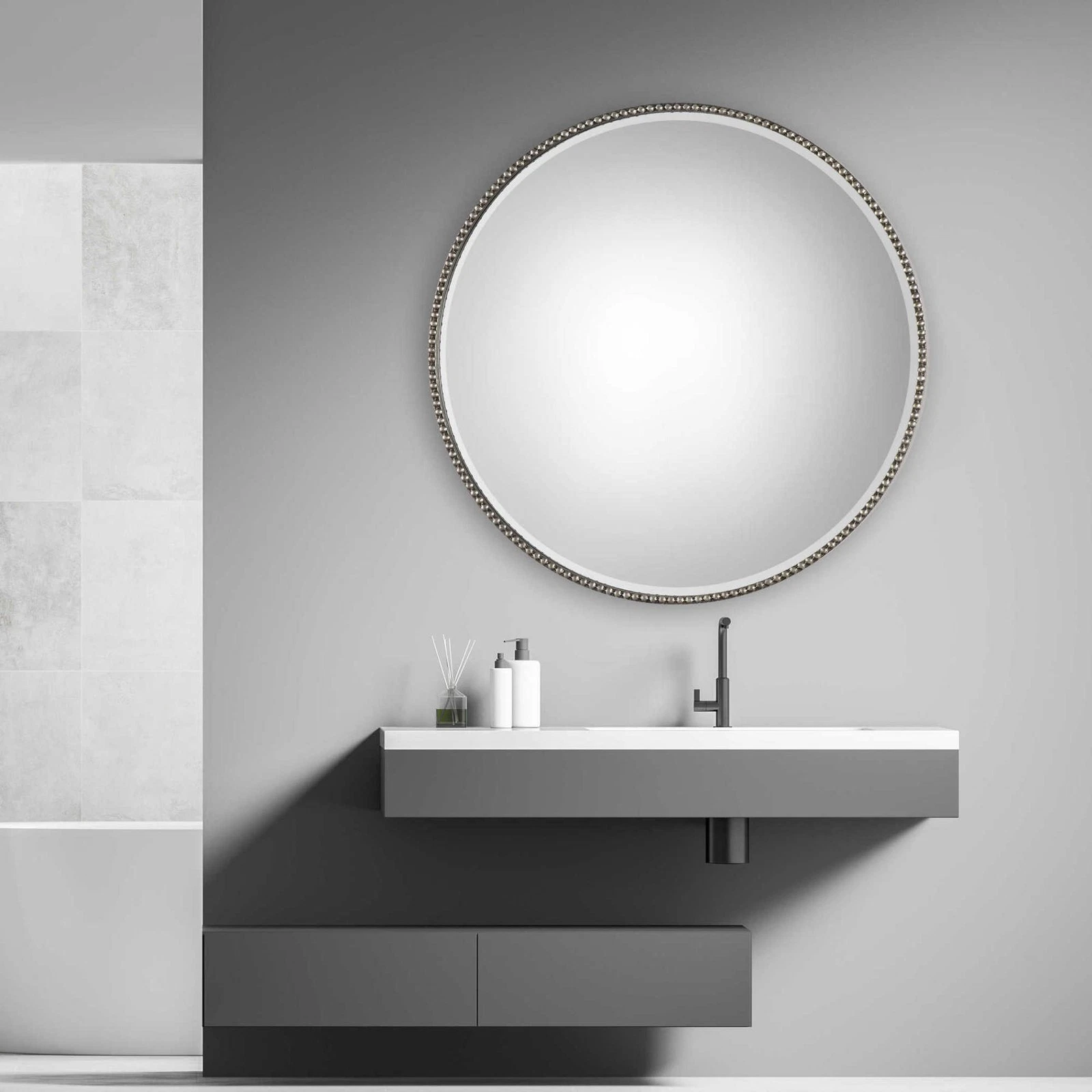 Uttermost 09252 Stefania 40" Diameter Circular Framed Bathroom - Silver