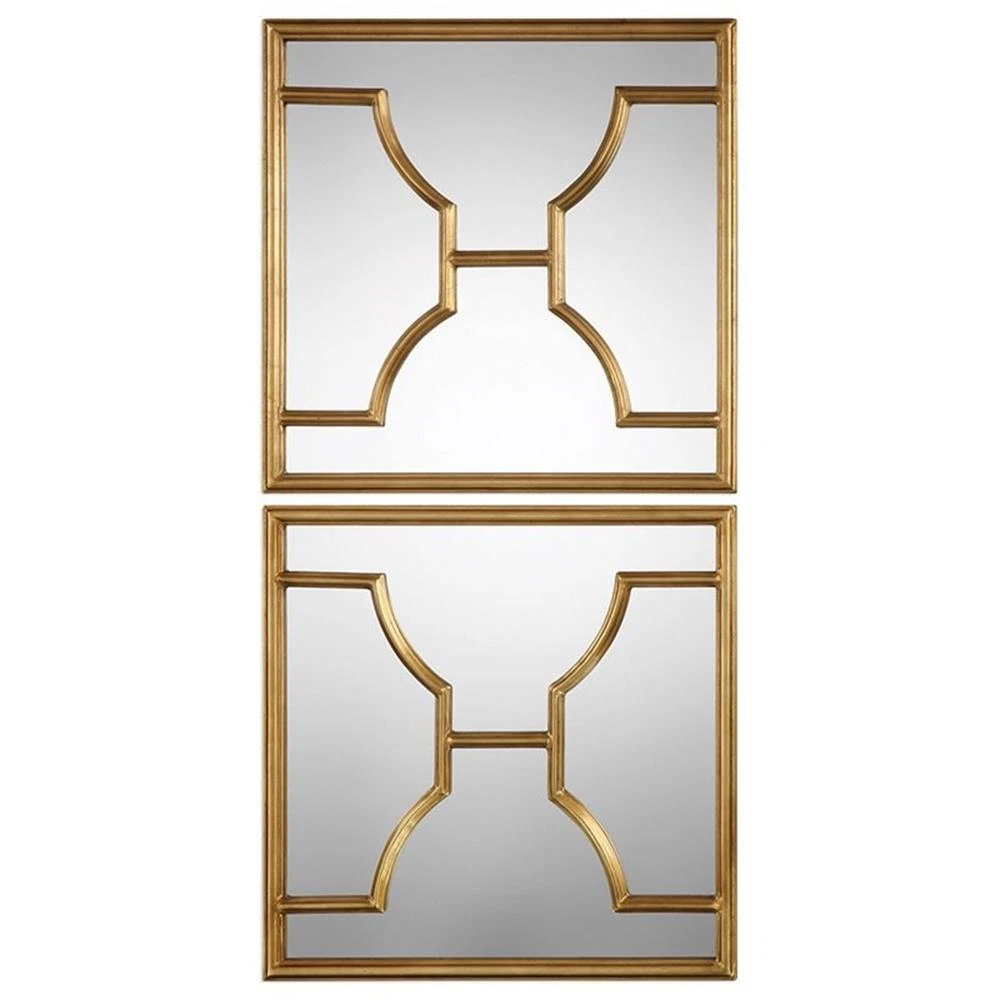 Uttermost Misa Contemporary Iron MDF Wood Decorative Mirror in Gold (Set of 2)