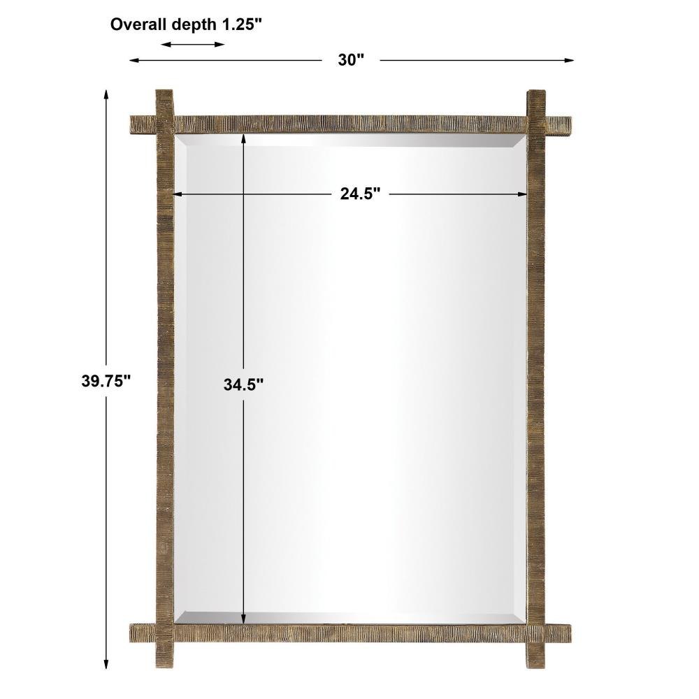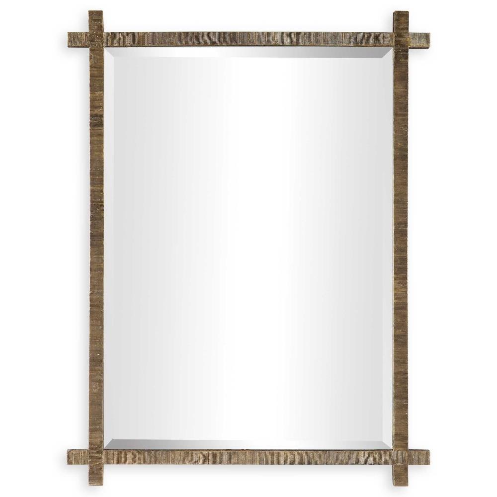 This Mirror Features An Antique Gold Finished Frame With Ribbed Texture, Adding A Tribal Feel. The Piece Has A Generous 1 1/4" Bevel And May Be Hung Horizontal Or Vertical.