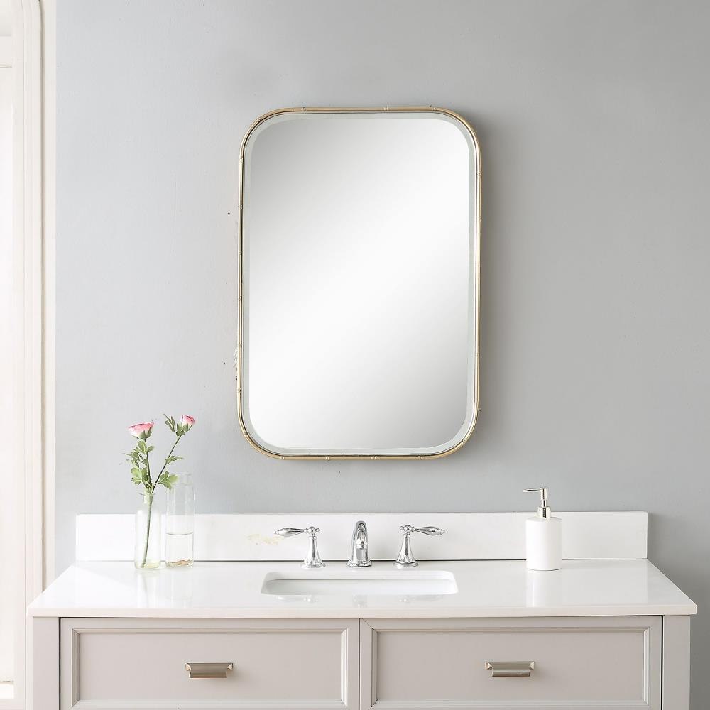 A Nod To Classic Chinoiserie Style, This Vanity Mirror Has A Petite Iron Frame With A Bamboo Design Finished In Antique Gold Leaf. May Be Hung Horizontal Or Vertical.