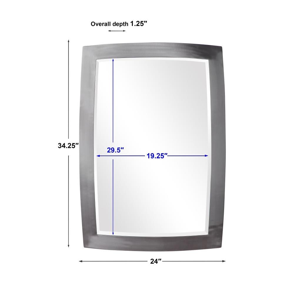This Transitional Mirror Features An Iron Frame Finished In Brushed Nickel With A Generous 1 1/4" Bevel. May Be Hung Horizontal Or Vertical.