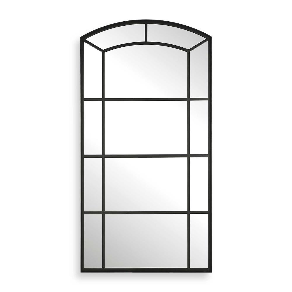 This Oversized Arch Mirror Features A Substantial Solid Iron Frame Finished In A Rich Satin Black, With A Deep Channeled Outer Edge.